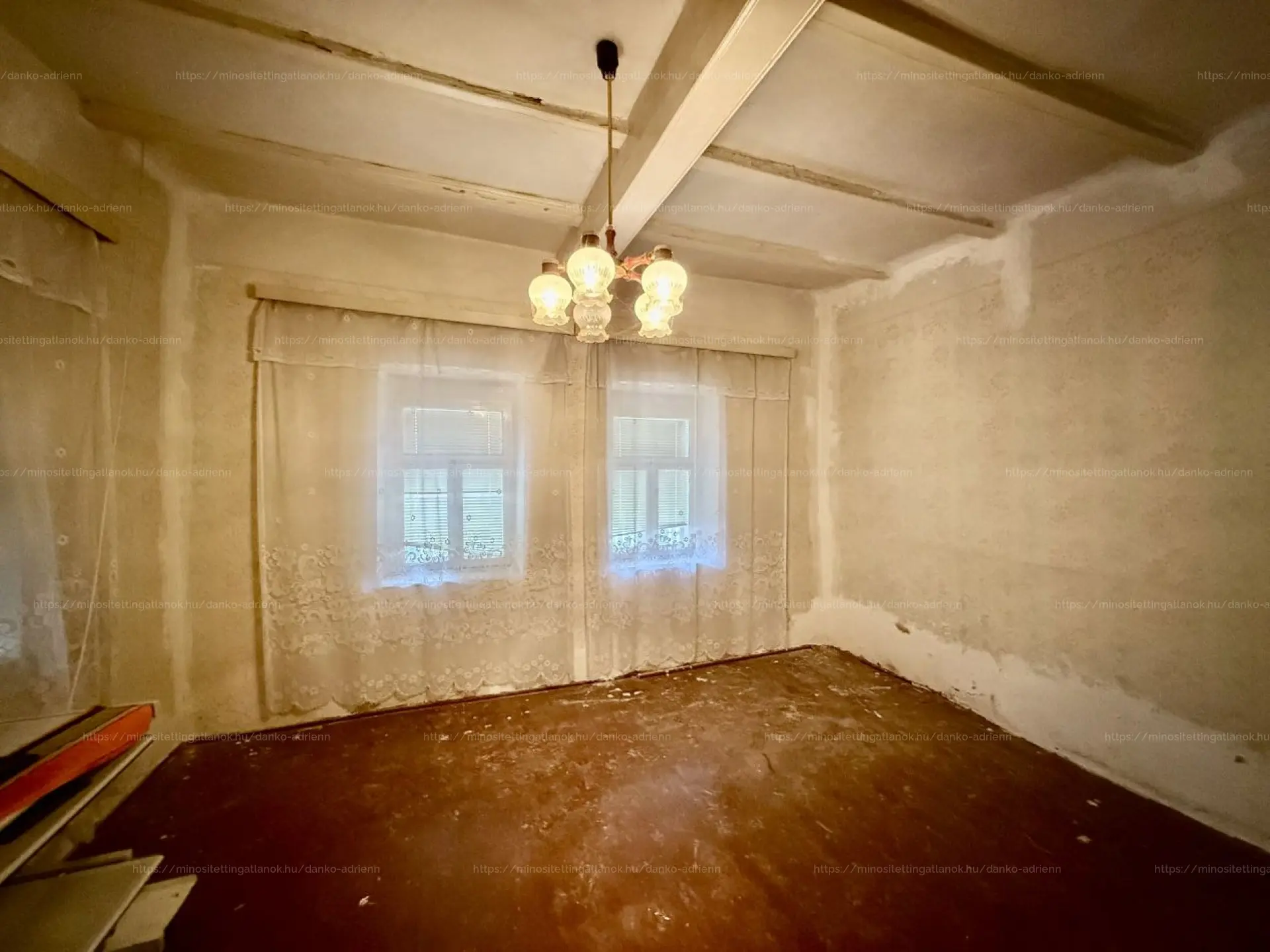 A FÜRDŐSZOBÁT jelenleg kintről lehet megközelíteni, kis bontással, átjáró nyitásával azonban meg lehetne oldani a belső átjárást is. A lakóház 65 m2 a külső fürdő további 10 m2. SZOBA, NAPPALI, KONYHA, FÉL SZOBA, KAMRA, beosztású.