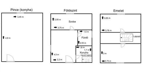 Haus 2: 90 m², dreigeschossig, in Leichtbauweise errichtet. Das Haus ist derzeit zu 70 % fertiggestellt (eine Fertigstellung ist möglich, wird aber gesondert besprochen). Die Aufteilung ist wie folgt: 1 Küche, 1 Bad, 2 Zimmer. Die Außendämmung (Styropor) ist 15 cm stark.
