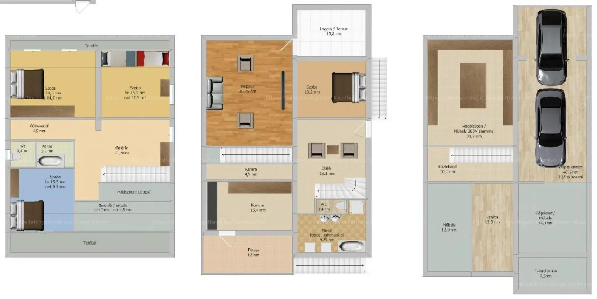 Galériás nappali • 3 szoba • gardrób • fürdőszoba • külön WC