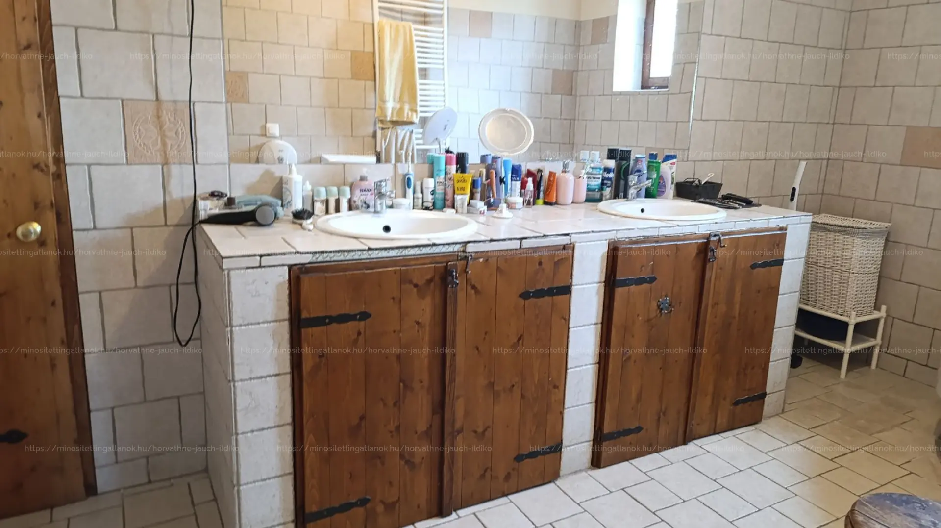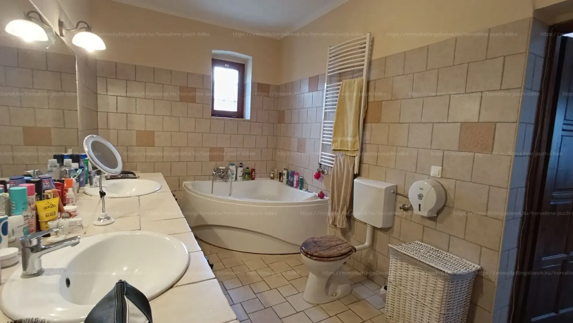 – Tágas fürdőszoba új sarokkáddal, dupla mosdóval