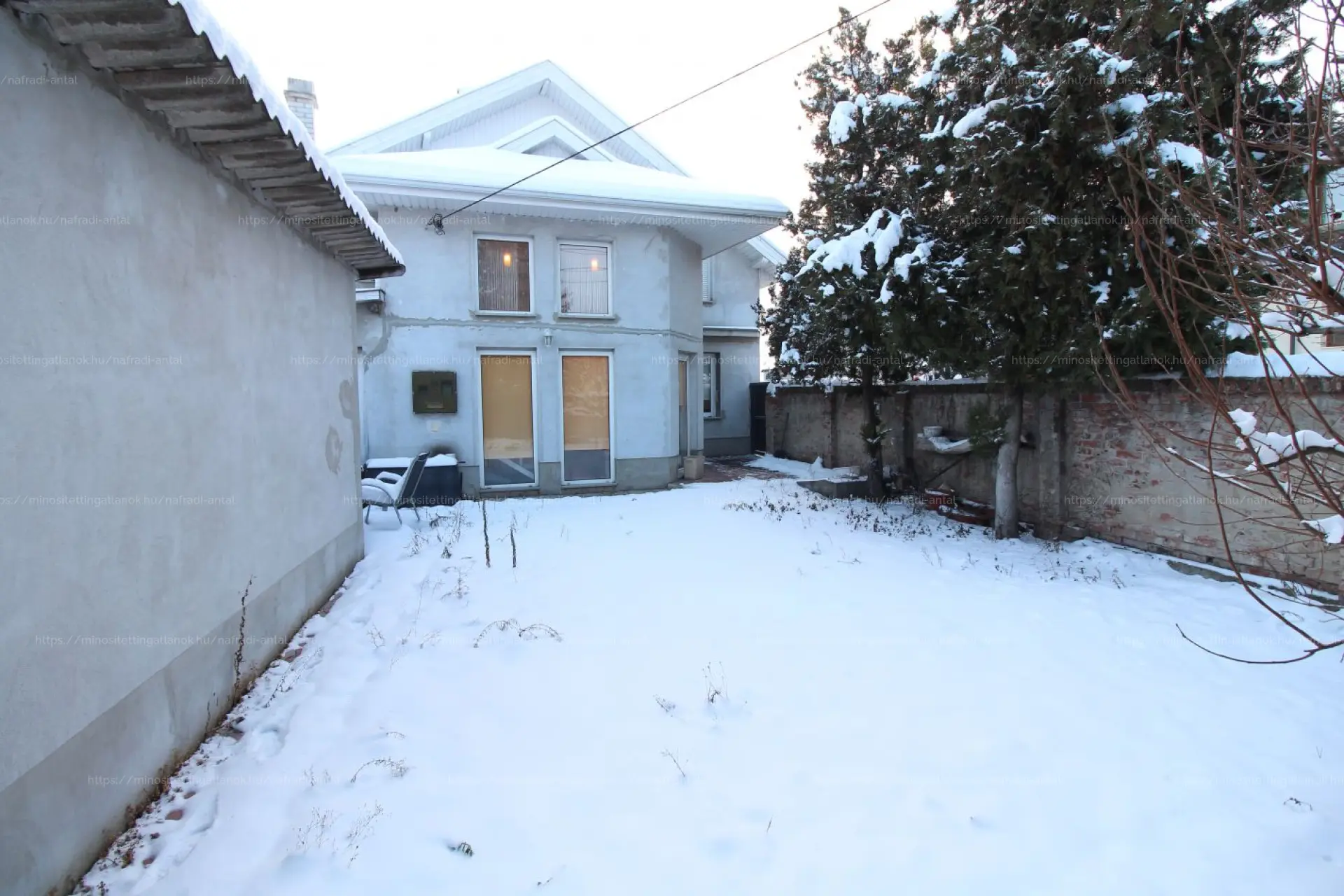 A 311 m2-es telekre téglából épült belső 2 szintes, 151 m2-es ház többszöri bővítés, modernizálás során nyerte el mai elrendezését. Az alsó szinten 2 szoba, gardrób, tágas előszoba-étkező, konyha, kamra, fürdő és udvari bejáratot is biztosító kazánház található. A felső szinten fürdőszoba, jelenleg egy térben kialakított konyha, étkező, nappali és hálósarok, valamint 1 külön szoba van.