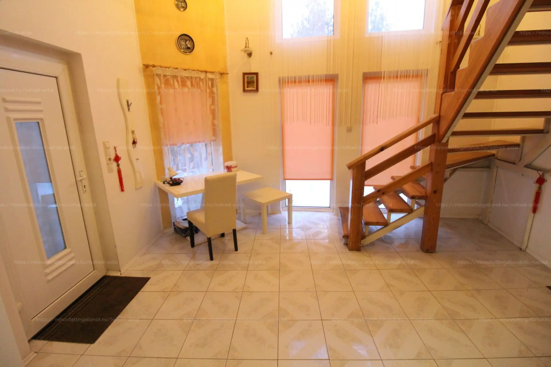 Bejárati ajtó és az ablakok műanyagra lettek cserélve, melyeket redőny, szúnyogháló véd.