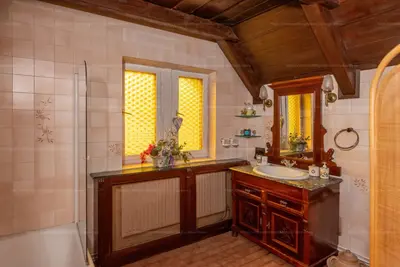 A kertben számos kényelmi funkció található. A nyári hőségben felüdülést nyújt a saját úszómedence. Emellett egy tároló/pince is rendelkezésre áll, amely ideális a kerti eszközök vagy a háztartási felszerelések tárolására. Kertben öntözőrendszer található. Ház riasztóval felszerelt.
