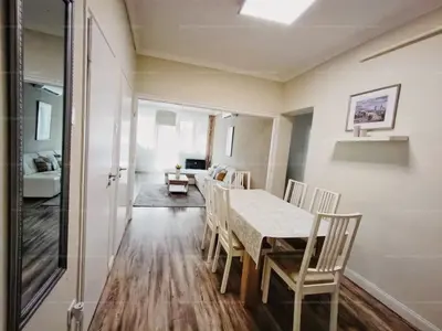 A lakás világos, jól tagolt és kifejezetten praktikus elrendezésű. Három különnyíló szoba mellett nagyméretű nappali, elkülönített konyha, étkező, spájz, gardrób és kiszolgáló helyiségek szolgálják a kényelmet. A hőszigetelt üvegezésű nyílászárók redőnnyel és szúnyoghálóval el vannak látva, a fedett teraszon pedig kipattantható árnyékoló gondoskodik a kellemes használatról. Fűtés gázkonvektorral megoldott, a nappaliban erős hűtő fűtő klíma nyújtja a komfortot. A árból része a konyhabútor, a gardrób, illetve a beépített mosogatógép.