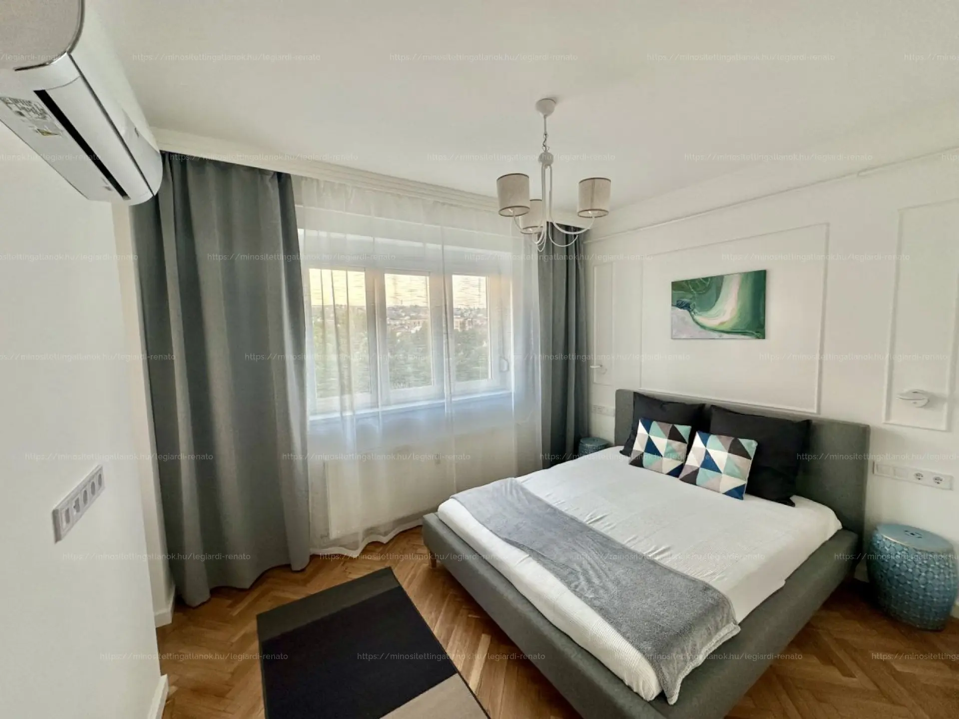 Ez a 6. emeleti saroklakás lenyűgöző panorámát nyújt az egyik erkélyről a budai hegységre, míg a másik erkélyről a Gellérthegy és a Budai vár egy részét csodálhatja meg. A lakás frissen felújított: új, három rétegű nyílászárók, teljesen új elektromos hálózat és gondosan felújított tölgy parketta várja az új tulajdonost. Az egyedi, asztalos által készített konyhabútor és beépített szekrények praktikus és kényelmes megoldásokat kínálnak. A téli hónapokban egyedi mérős távfűtés, míg nyáron három inverteres klíma biztosítja a kellemes hőmérsékletet.