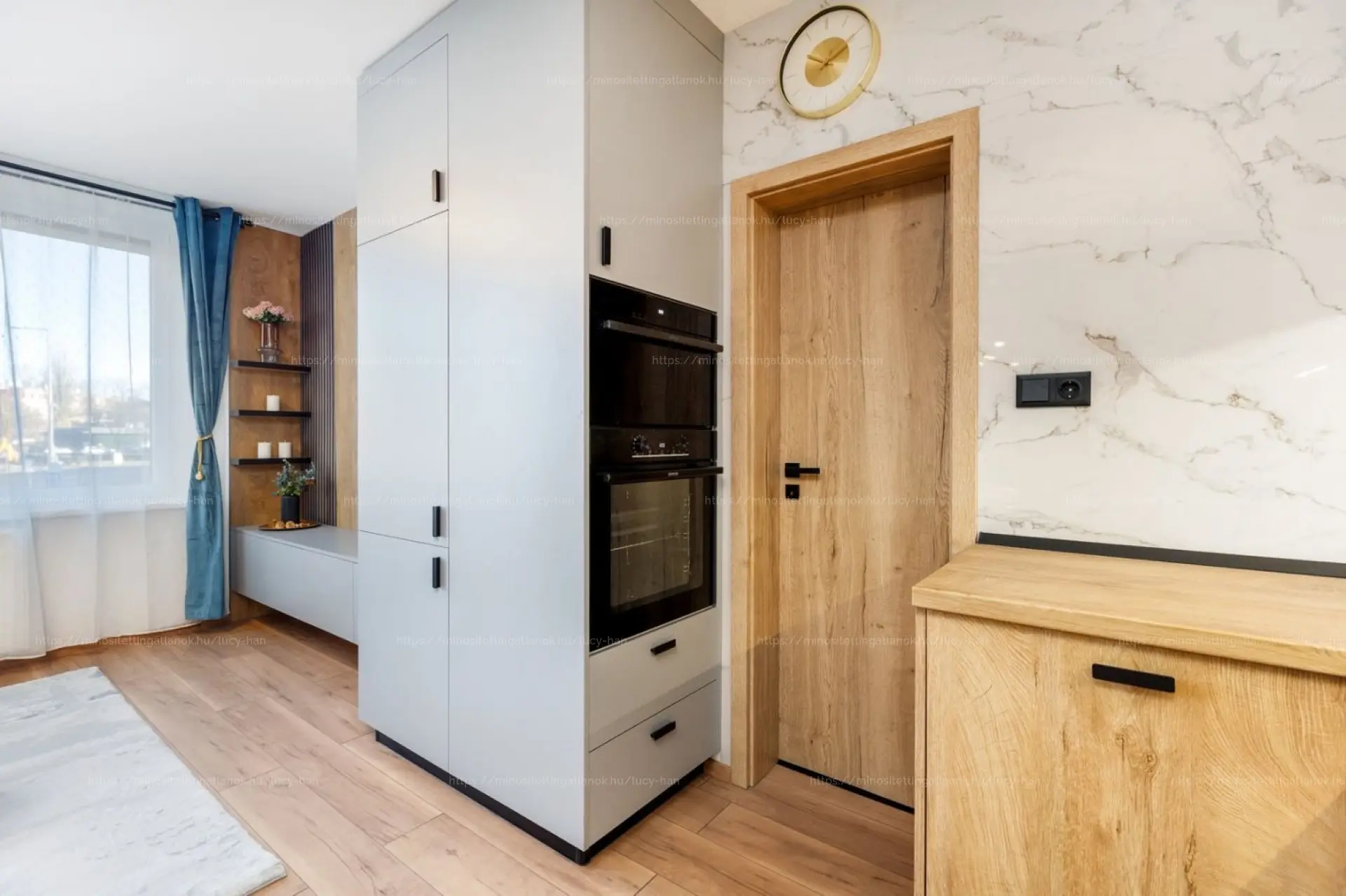 Az ingatlan teljes műszaki és esztétikai felújításon esett át: új külső és belső nyílászárók, redőnyök, több ponton záródó acél biztonsági ajtó, teljesen új elektromos és vízhálózat, új radiátorok, 3,5 kW klíma. Prémium burkolatok, egyedileg gyártott konyha és beépített bútorok, Gorenje beépített konyhagépek, mosó- és szárítógép. A lakás teljes berendezéssel együtt eladó, minden a vételár része.