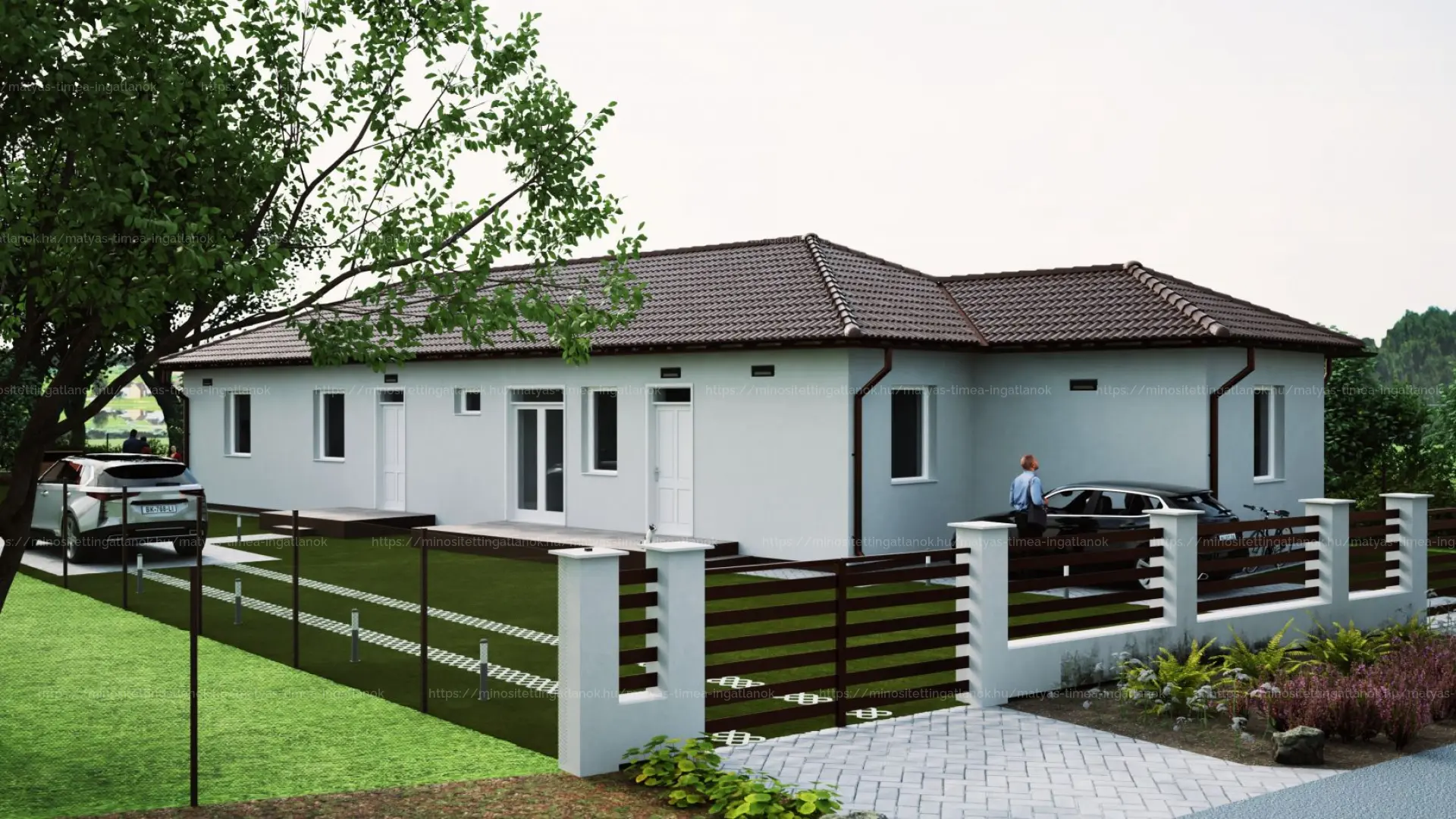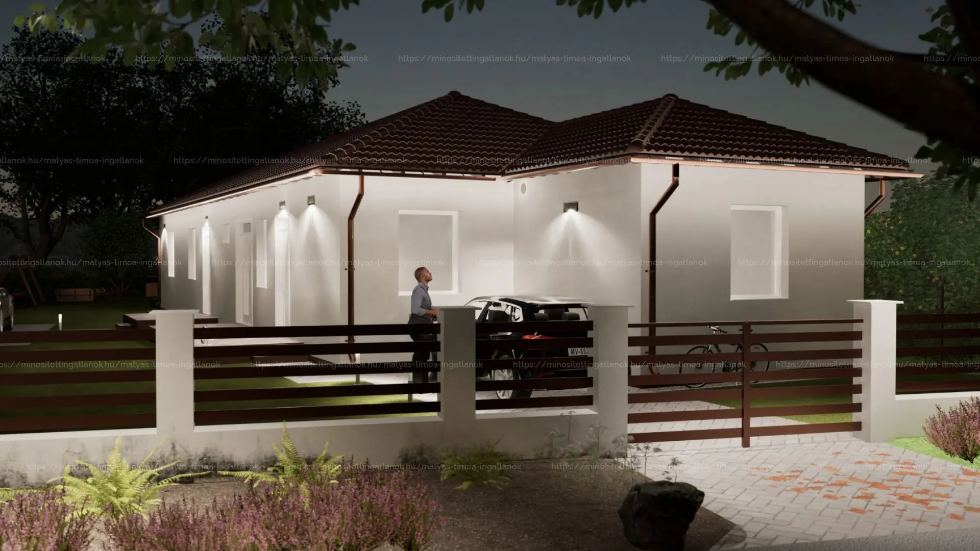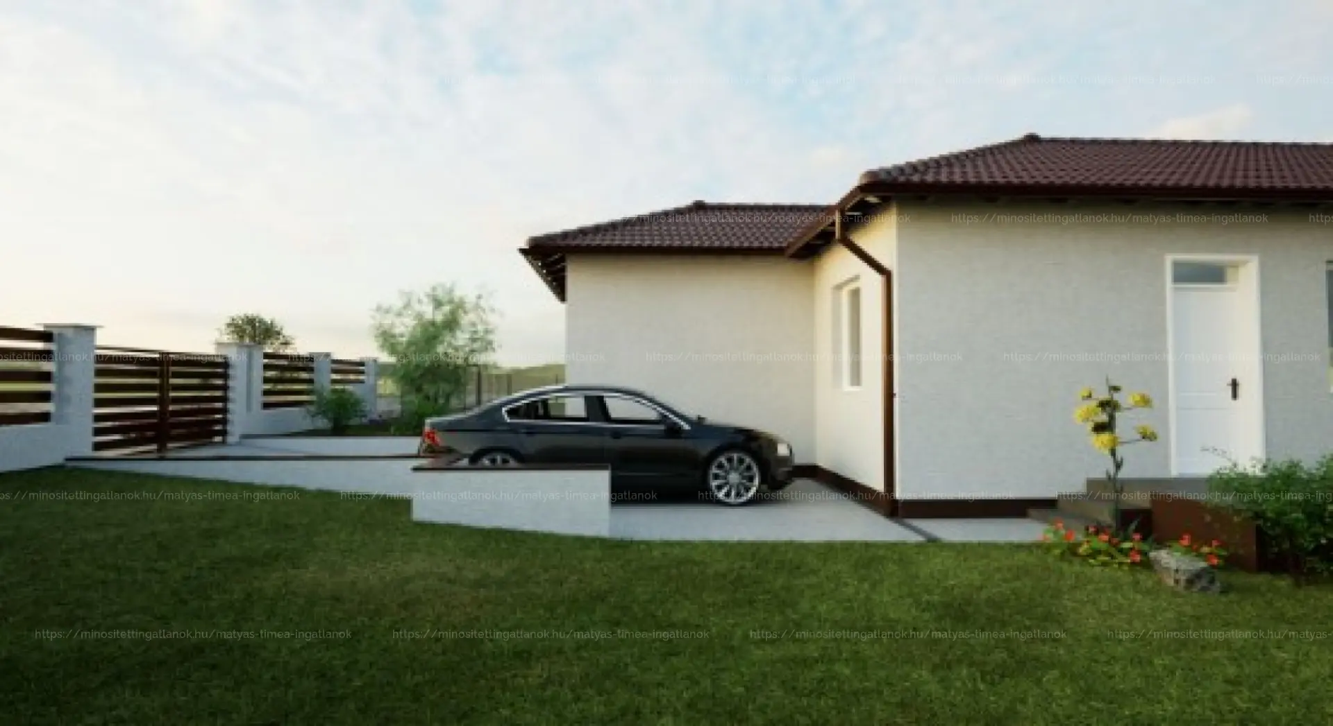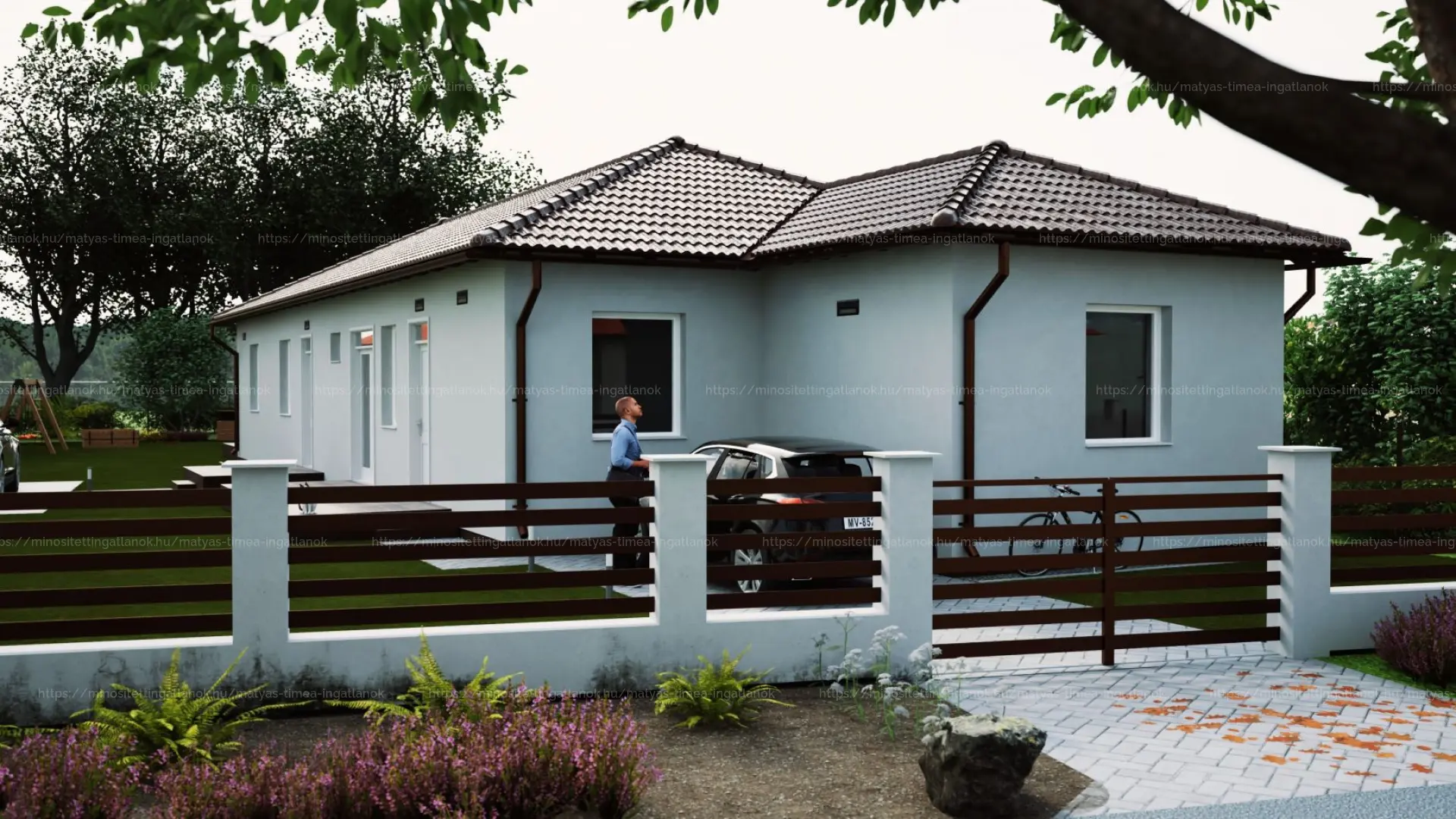 - Szürke színű térburkolatos járda, kocsibeállóval (30 m2)