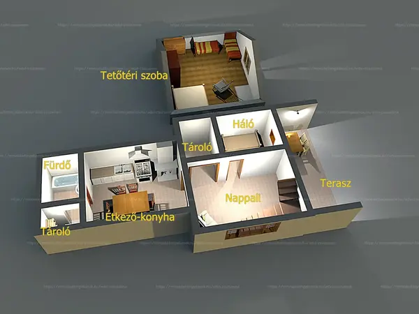Az ingatlan összesen nettó 90 m2 alapterületű.