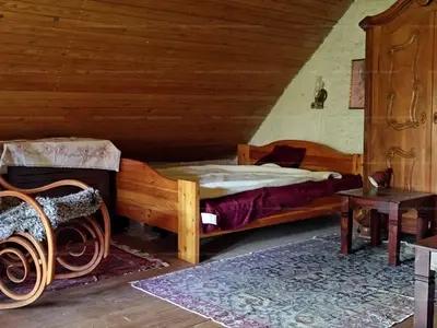 A ház további része is kőfalakból áll. Itt egy nappali, hálószoba került kialakításra. Innen vezet egy fa lépcső a tágas tetőtérbe, ahol nagy belmagasságú, egy légterű háló található.