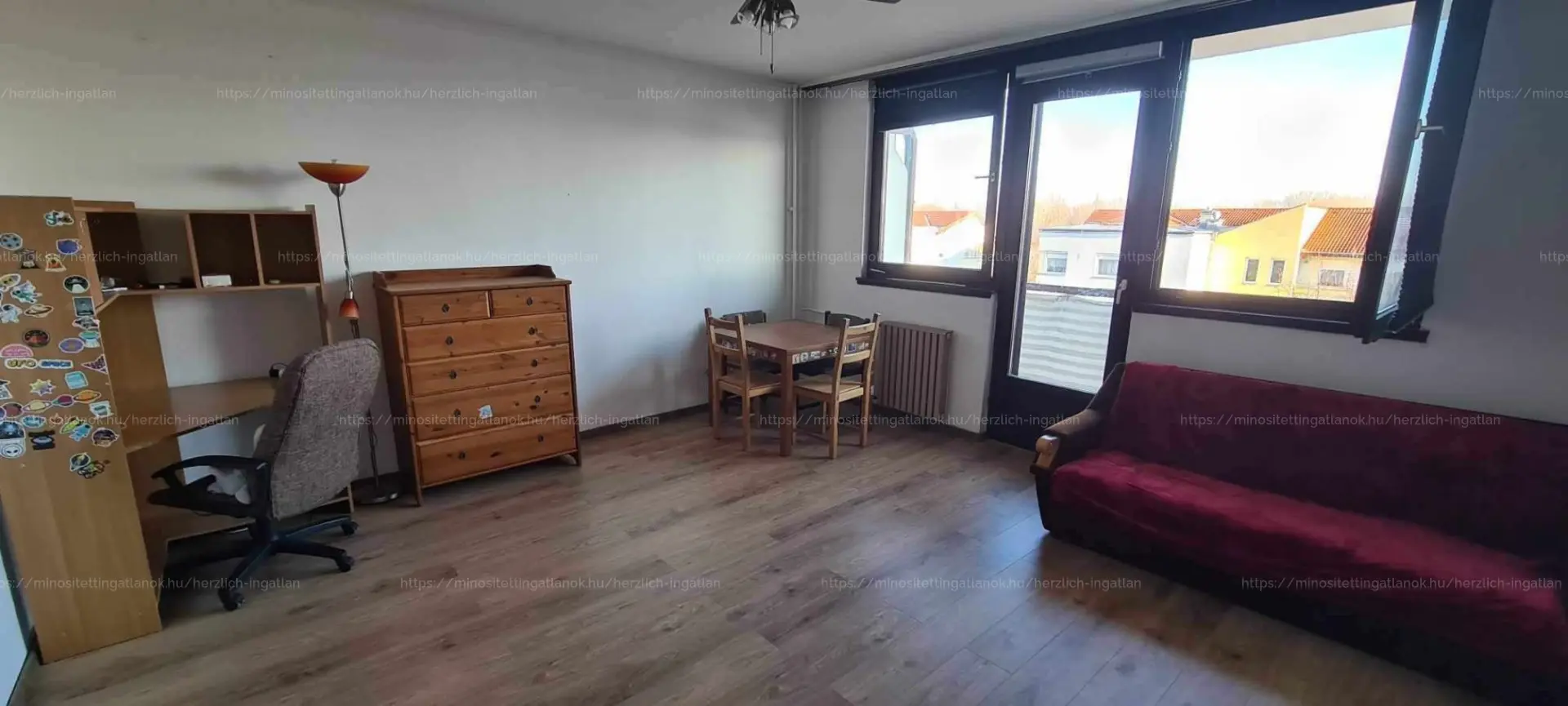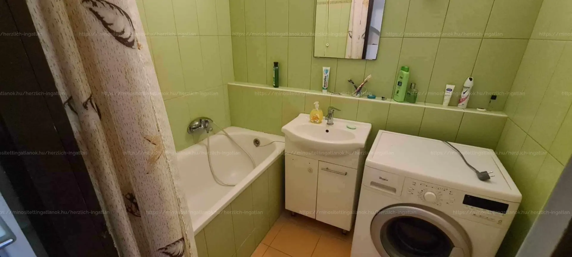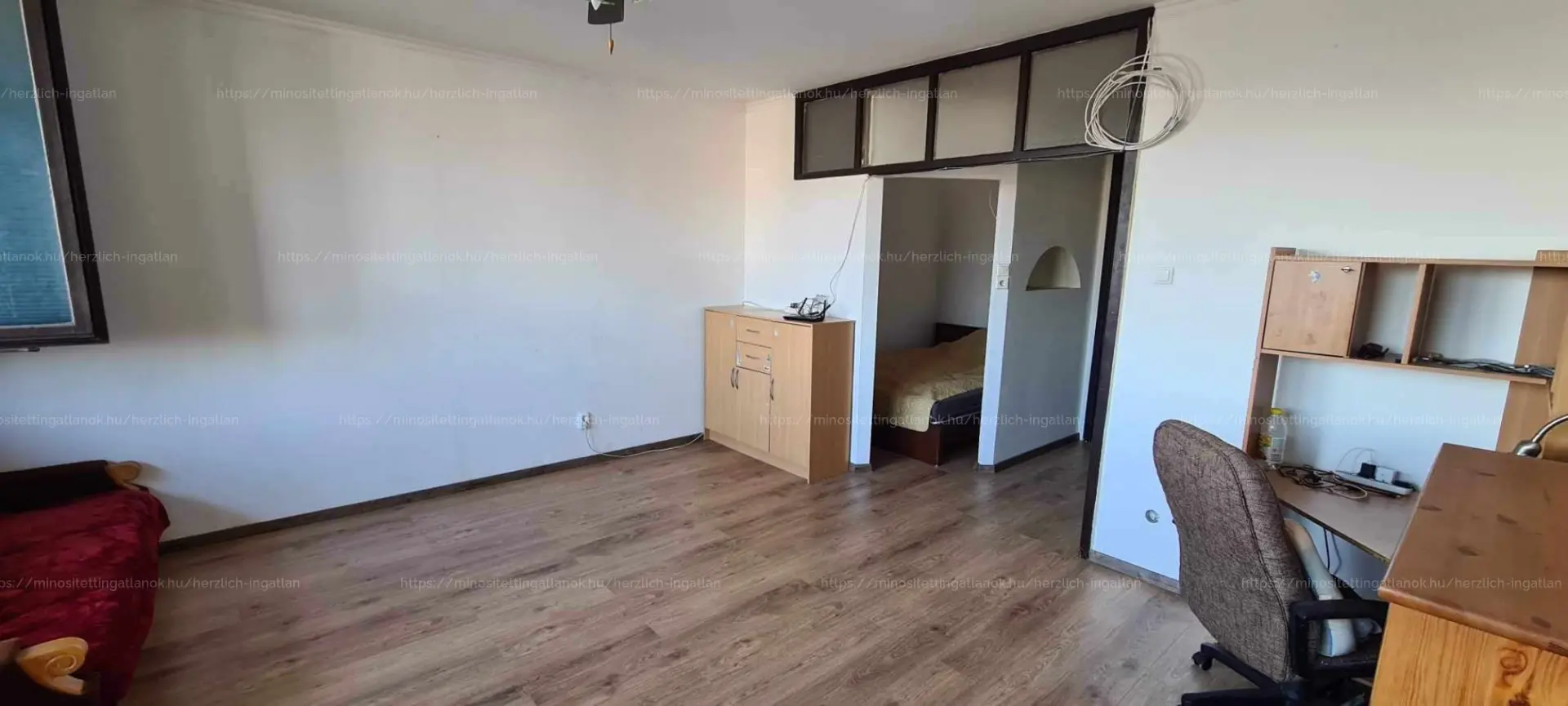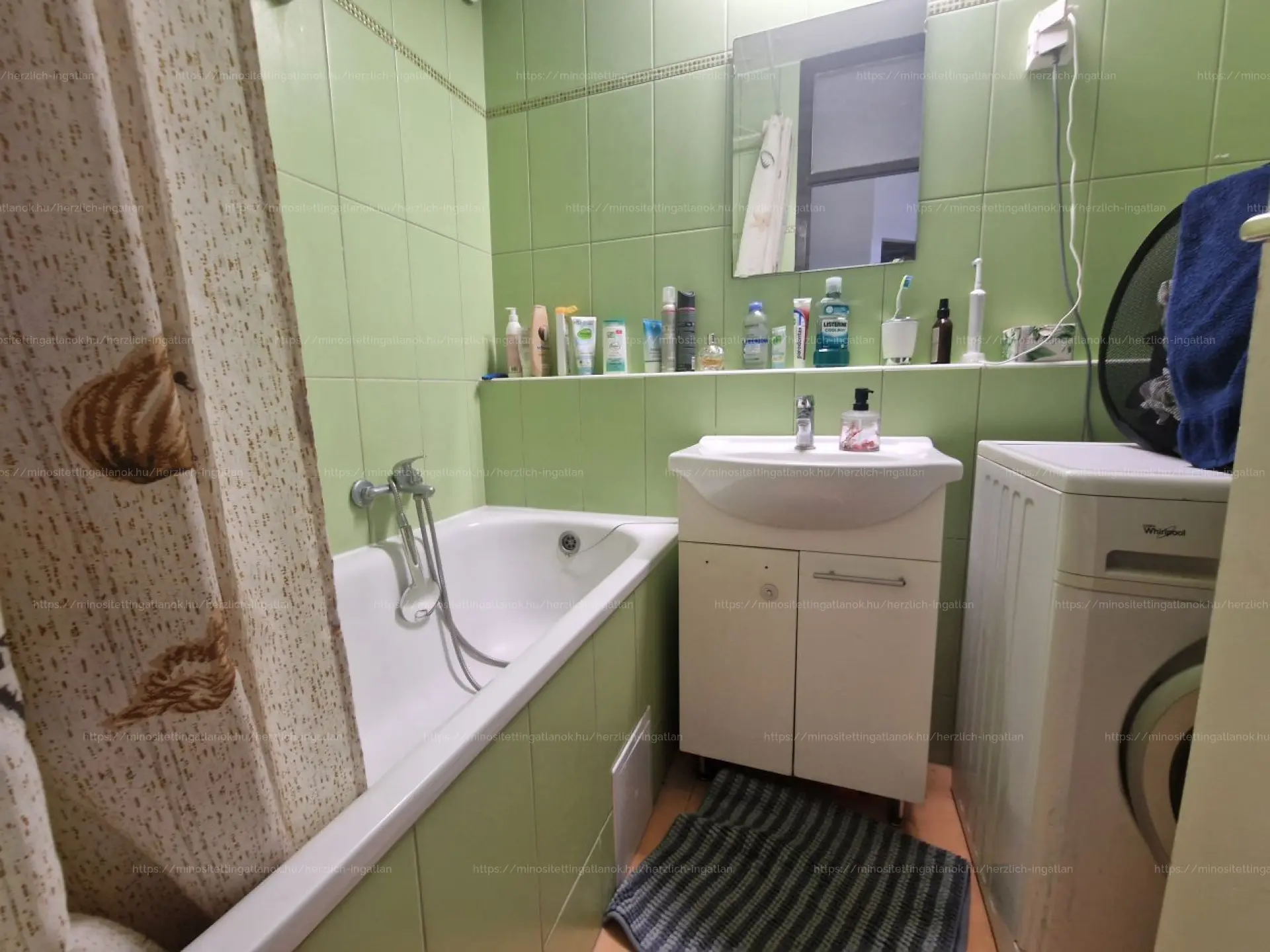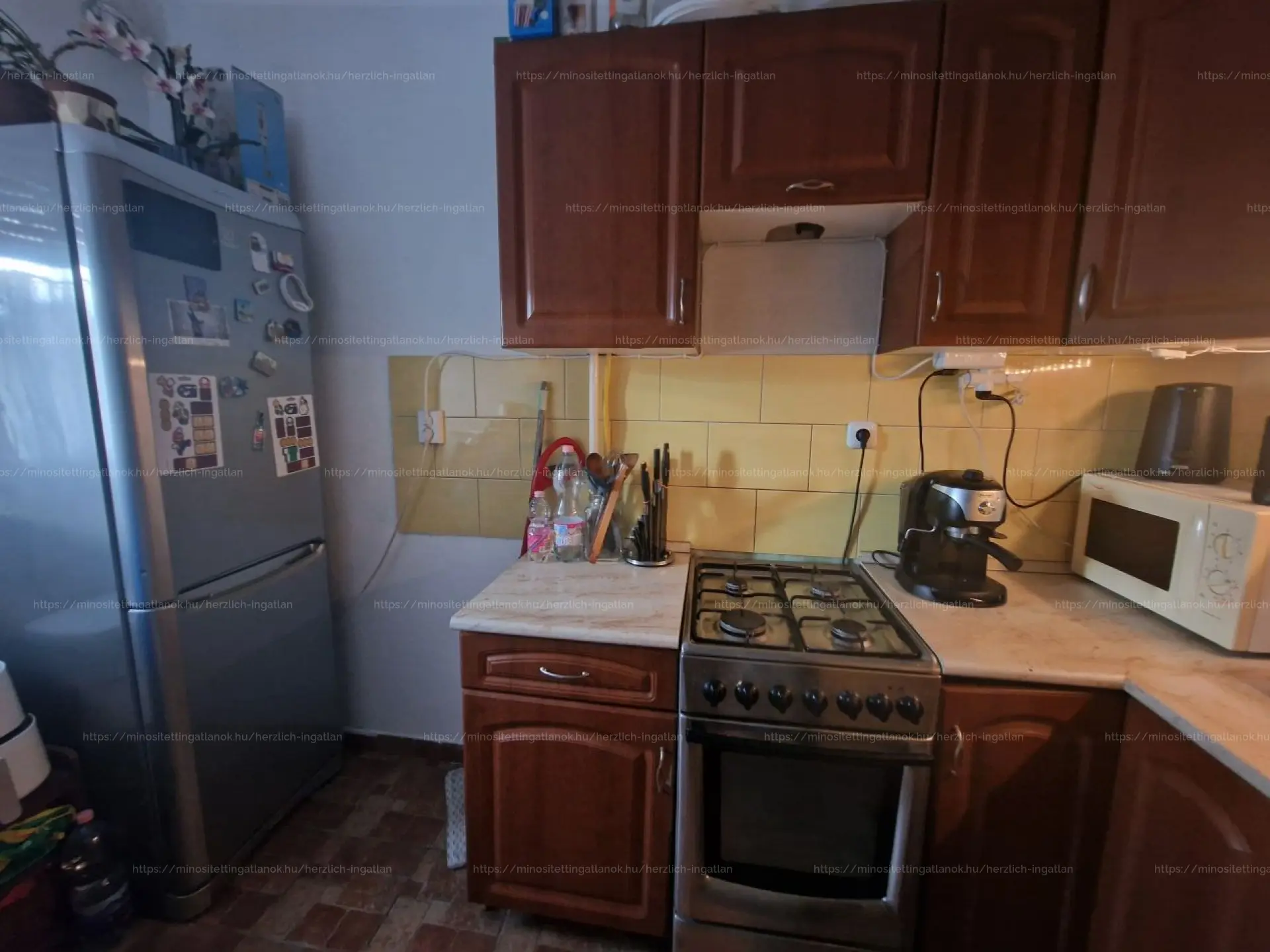 Beosztása: nappali + 2 hálófülke, konyha, fürdőszoba, külön WC, valamint közös tároló is tartozik hozzá.