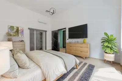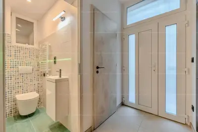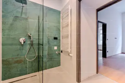A több mint 3 méteres belmagasság, a letisztult terek, a minőségi anyagok és az egyedi asztalosmunkák egy igazán különleges, magas presztízsű lakást teremtenek.