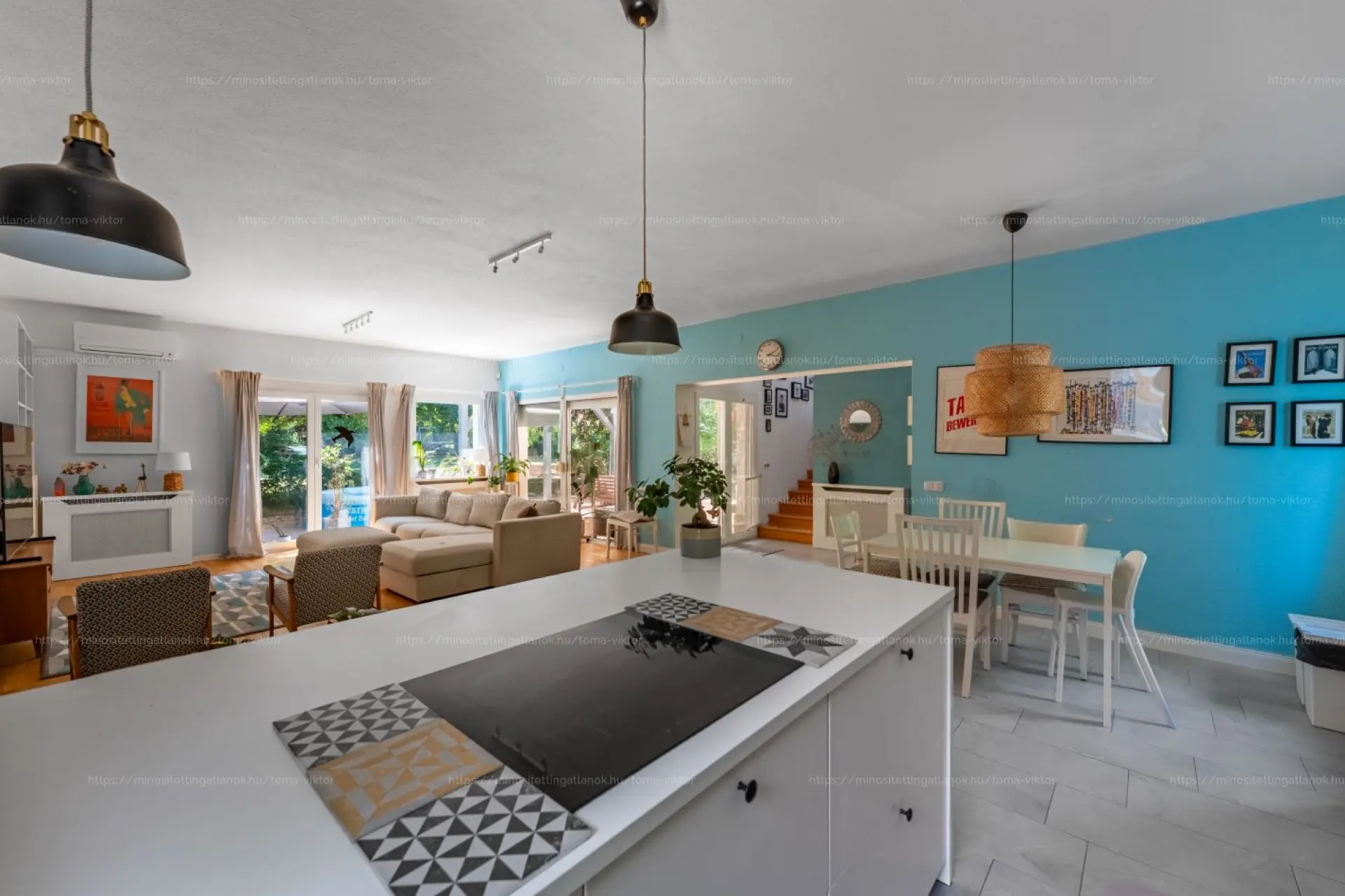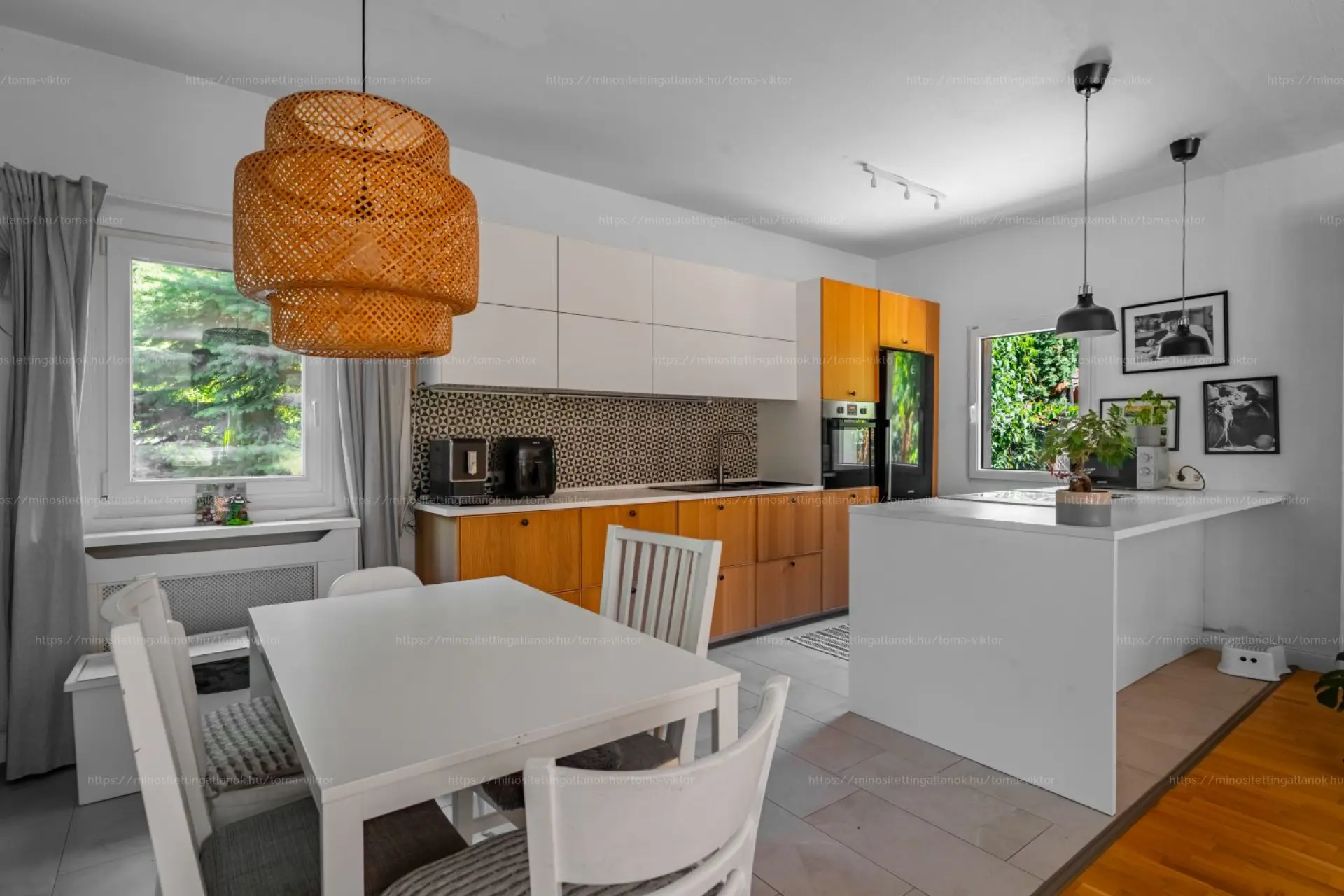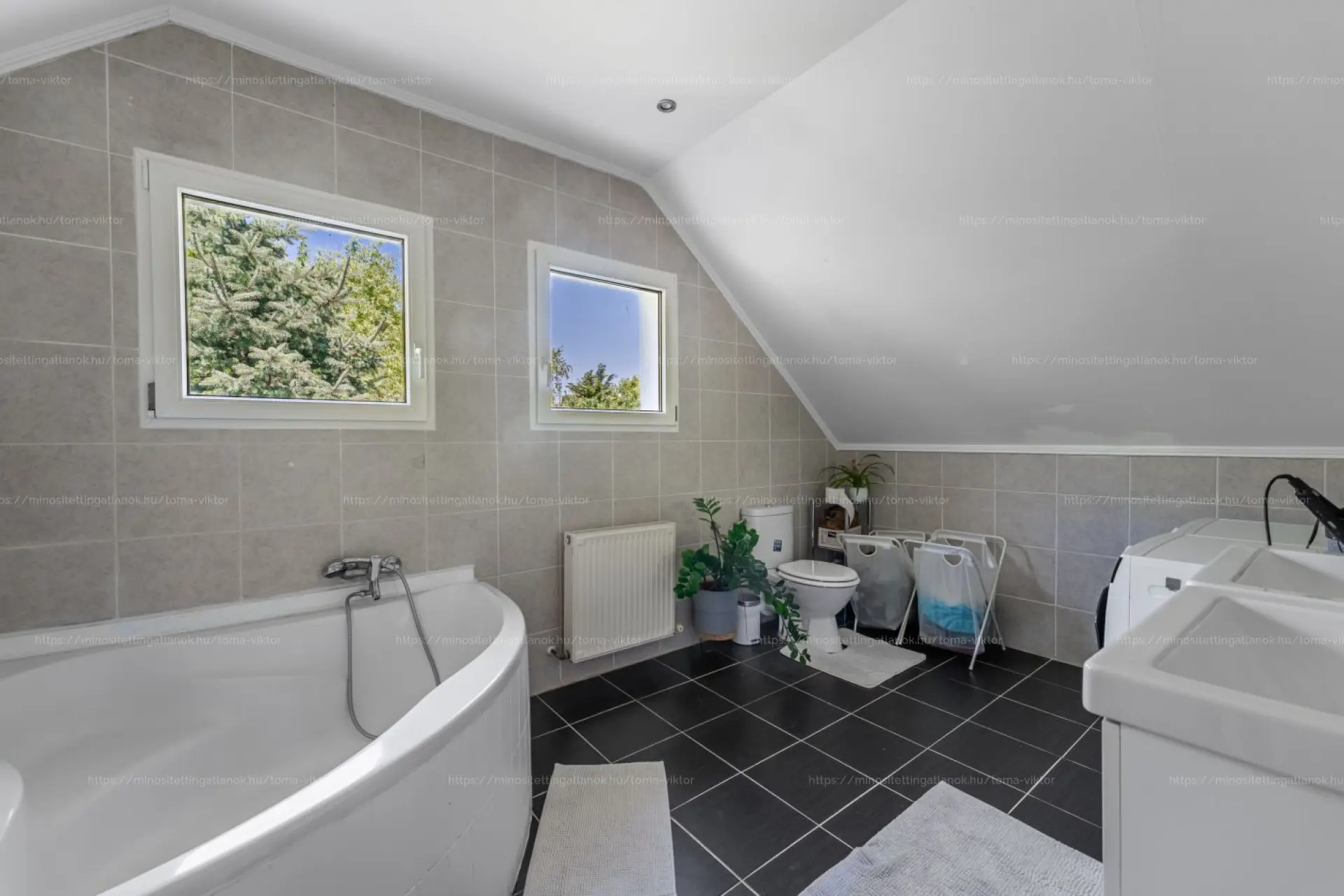 Műszaki tartalom (tények): 2001-ben épült; 20 cm Ytong külső fal + 5 cm Nikecell; vasbeton födém; tető fafödém, 20 cm kőzetgyapot szigeteléssel, betoncserép héjazat. Felújítások: új melegburkolatok 2019, alsó szint hidegburkolat 2021, 6 kW napelemrendszer 2023 (szaldó még ~8 évig), új Valiant gázkazán, víztároló és vízlágyító 2023, 3 rétegű műanyag ablakok 2022 (2 helyiség kivétellel), új bejárati ajtó 2022, gépesített konyha 2019. Redőny és szúnyogháló található. Elektromos csatlakozás: 3x16 A. Fűtés radiátoros, gázkazán; téli gázköltség kb. 20.000 Ft (fogyasztás alapján). Vízdíj átalány: 10.000 Ft/hó. Telekom optikai kapcsolat.