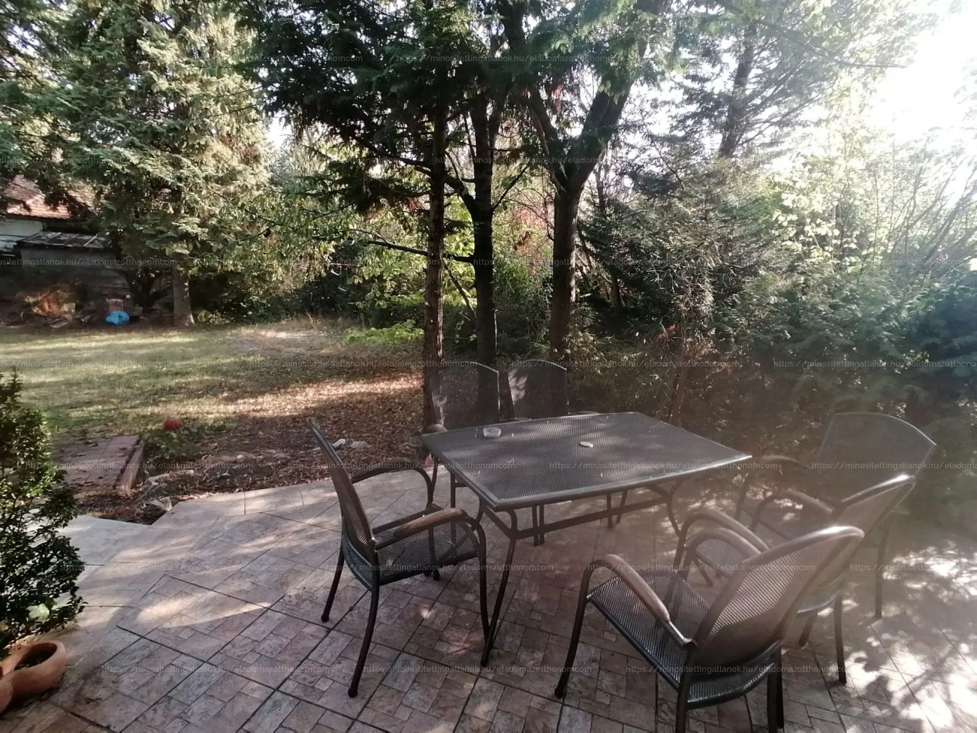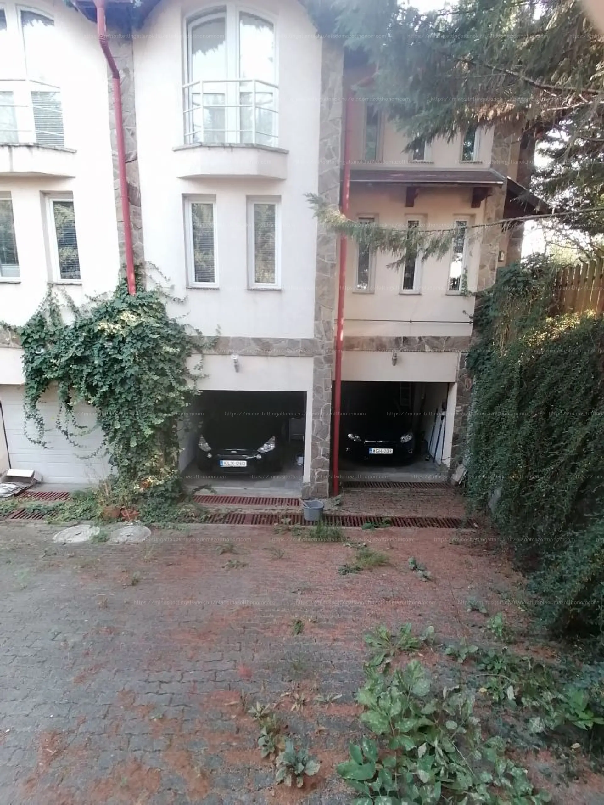A garázs előtti lejáró viacolorral van burkolva és télen fűthető. A kertben az öntözést kútról oldhatjuk meg.