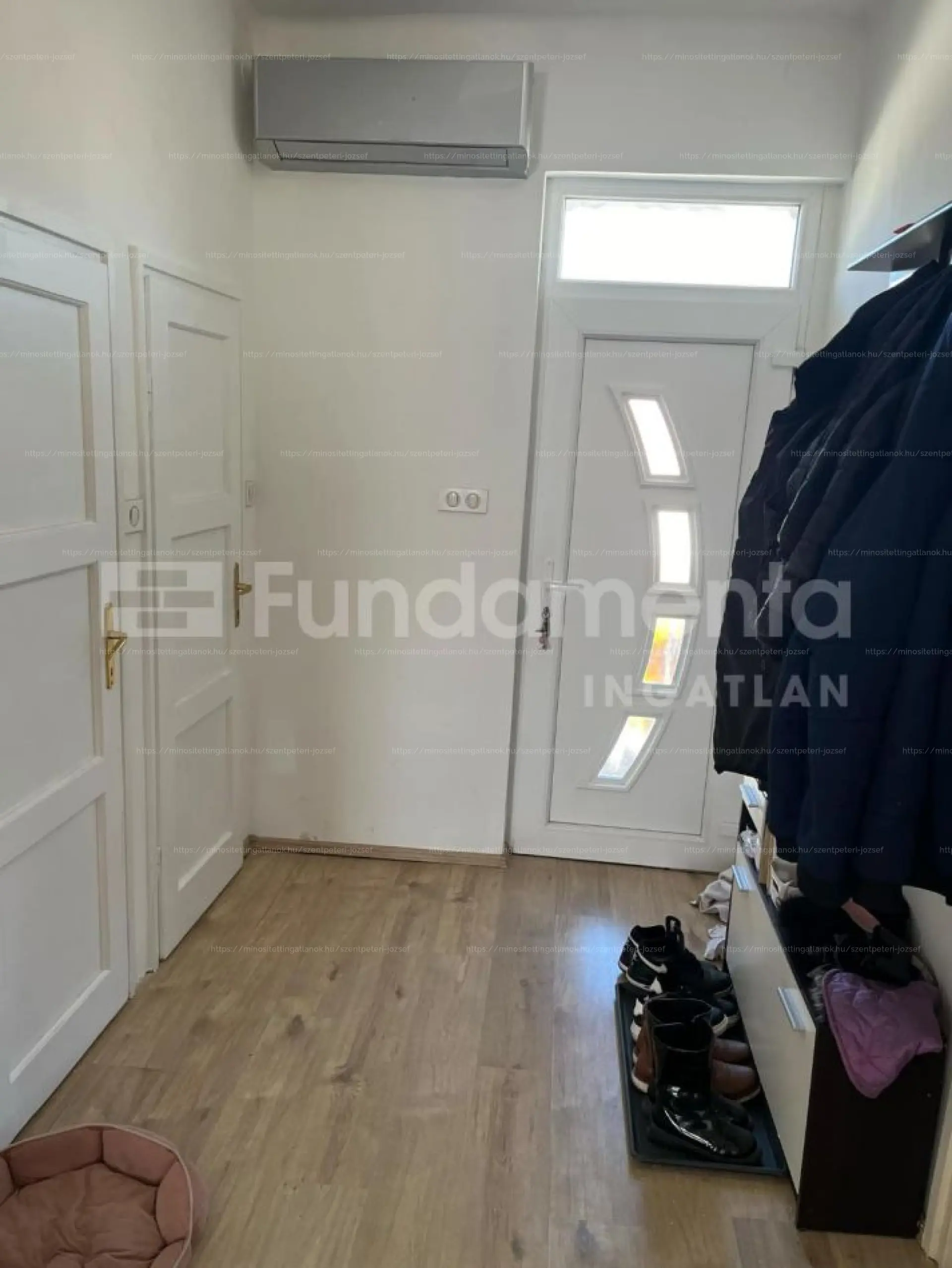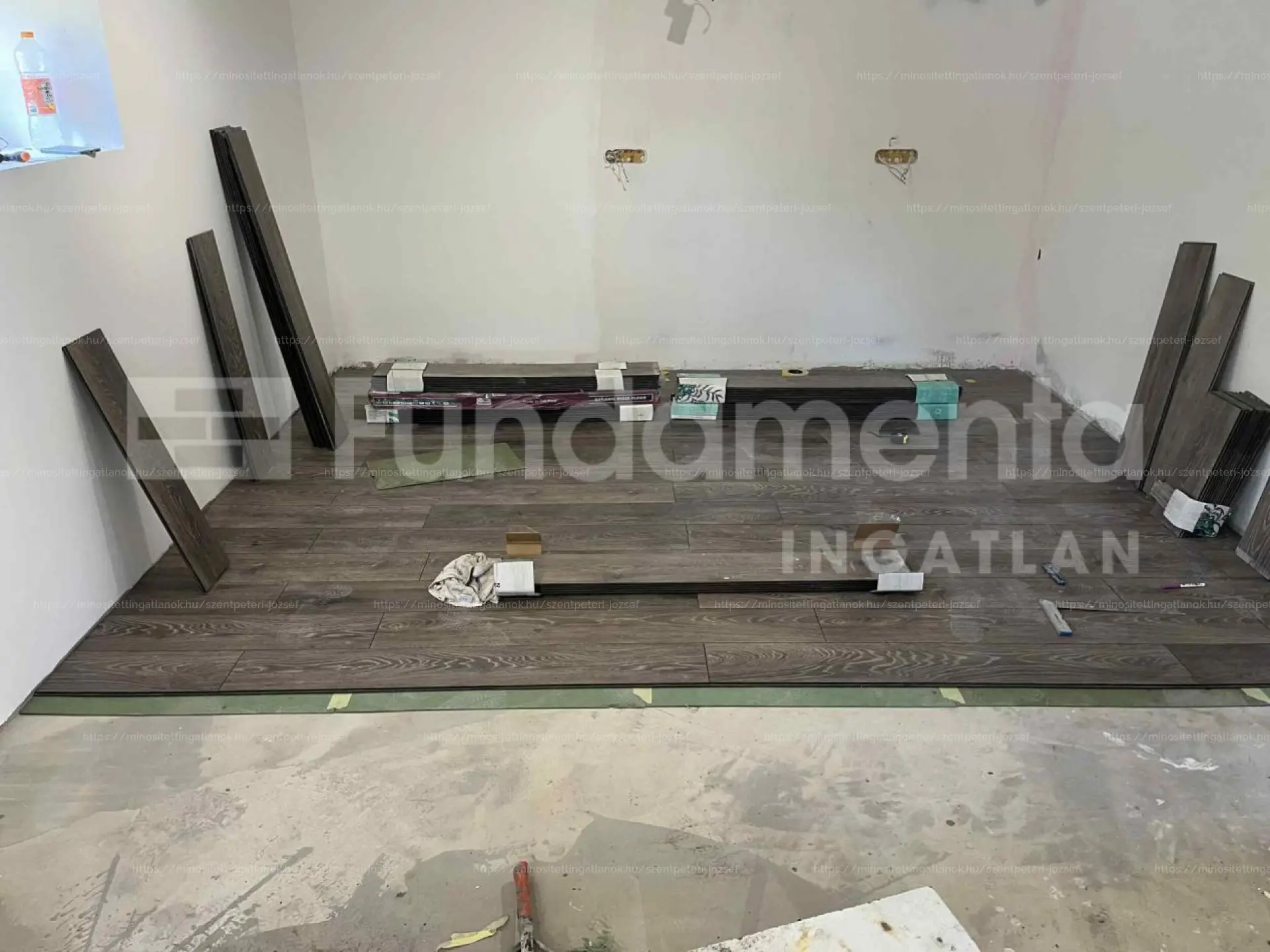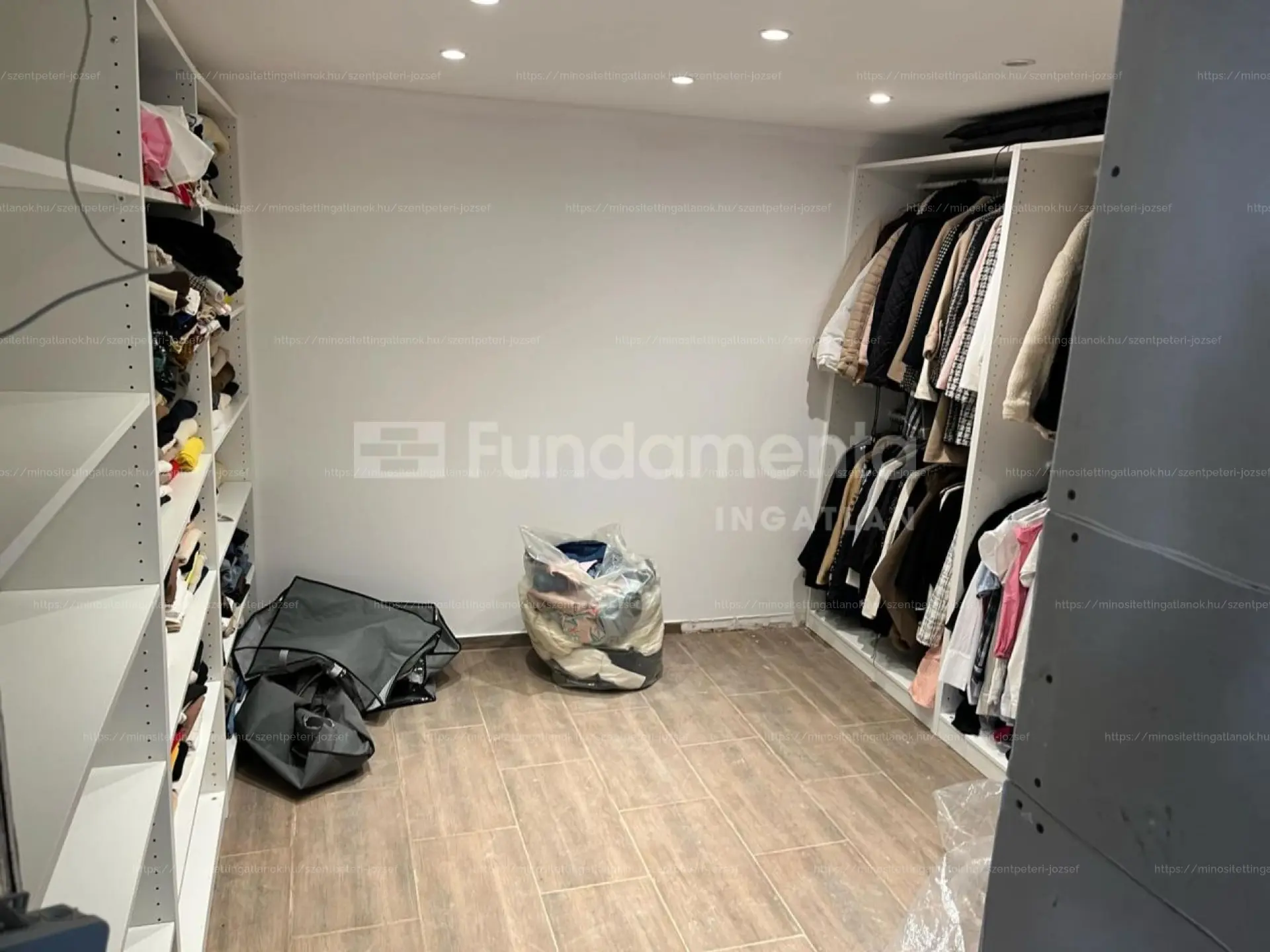 Az alsó szinten kialakításra került egy körülbelül 10 m2-es gardróbszekrény. Itt még a munkálatok tartanak, egy amerikai konyhás nappali, lépcső és WC kiépítése van folyamatban.
