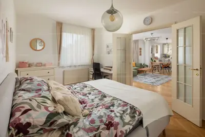 Ez a modern, világos, 95 m²-es lakás egy zöld, nyugodt, biztonságos környezetben kínálja a belvárosi élet minden előnyét.