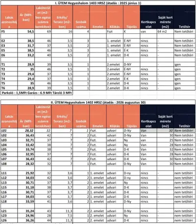 - Opcionálisan parkoló, garázs és tároló is vásárolható az ingatlanhoz