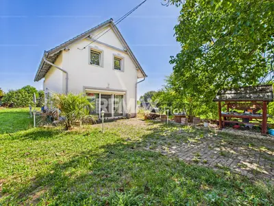 A házhoz tartozó telek 694 m, az udvar nagysága lehetővé teszi a kényelmes parkolást is.