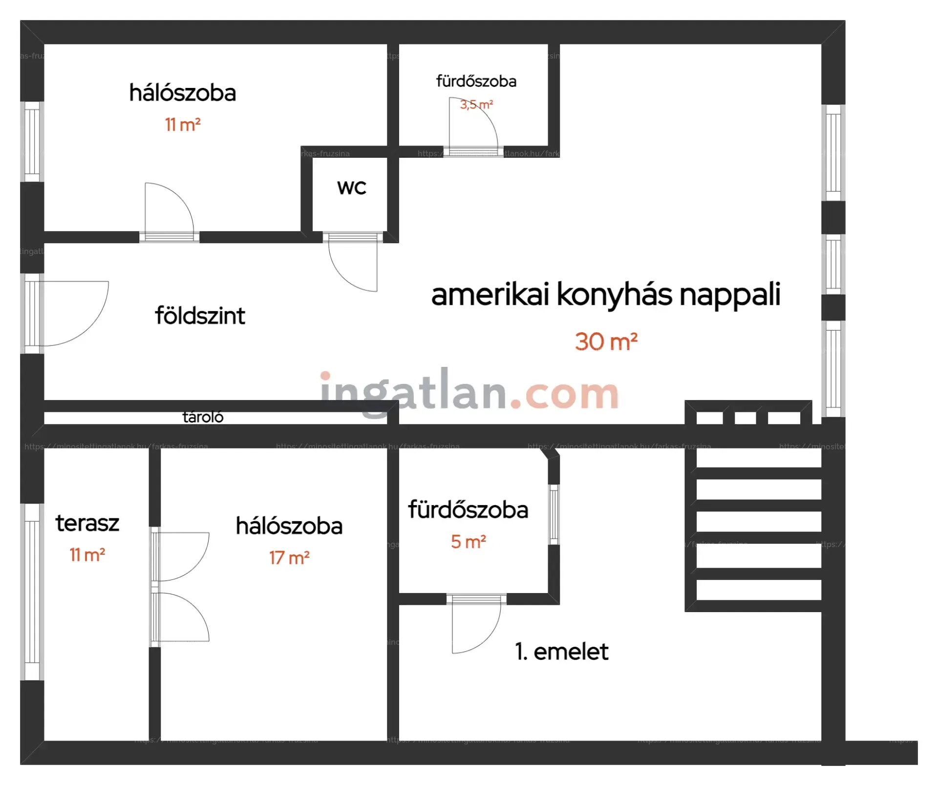 83 m² összesen (78 m² lakótér + 11 m² fedett terasz)