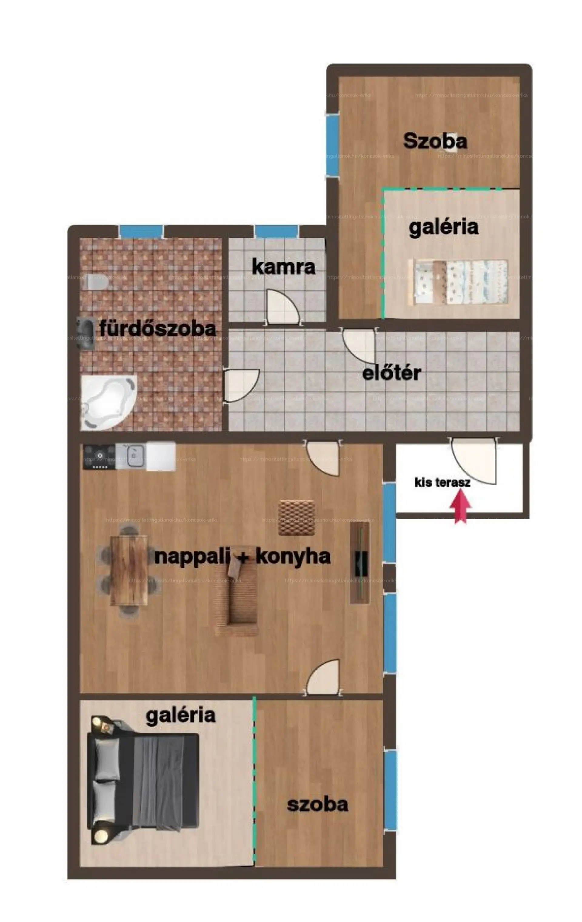 Az ingatlan tágas amerikai konyhás nappalival, valamint két, galériás, világos hálószobával rendelkezik, így az elosztása rendkívül jól kihasználható. A lakás csendes, mivel udvari fekvésű, miközben a bulinegyed, színházak, éttermek, kávézók mind karnyújtásnyira találhatók.