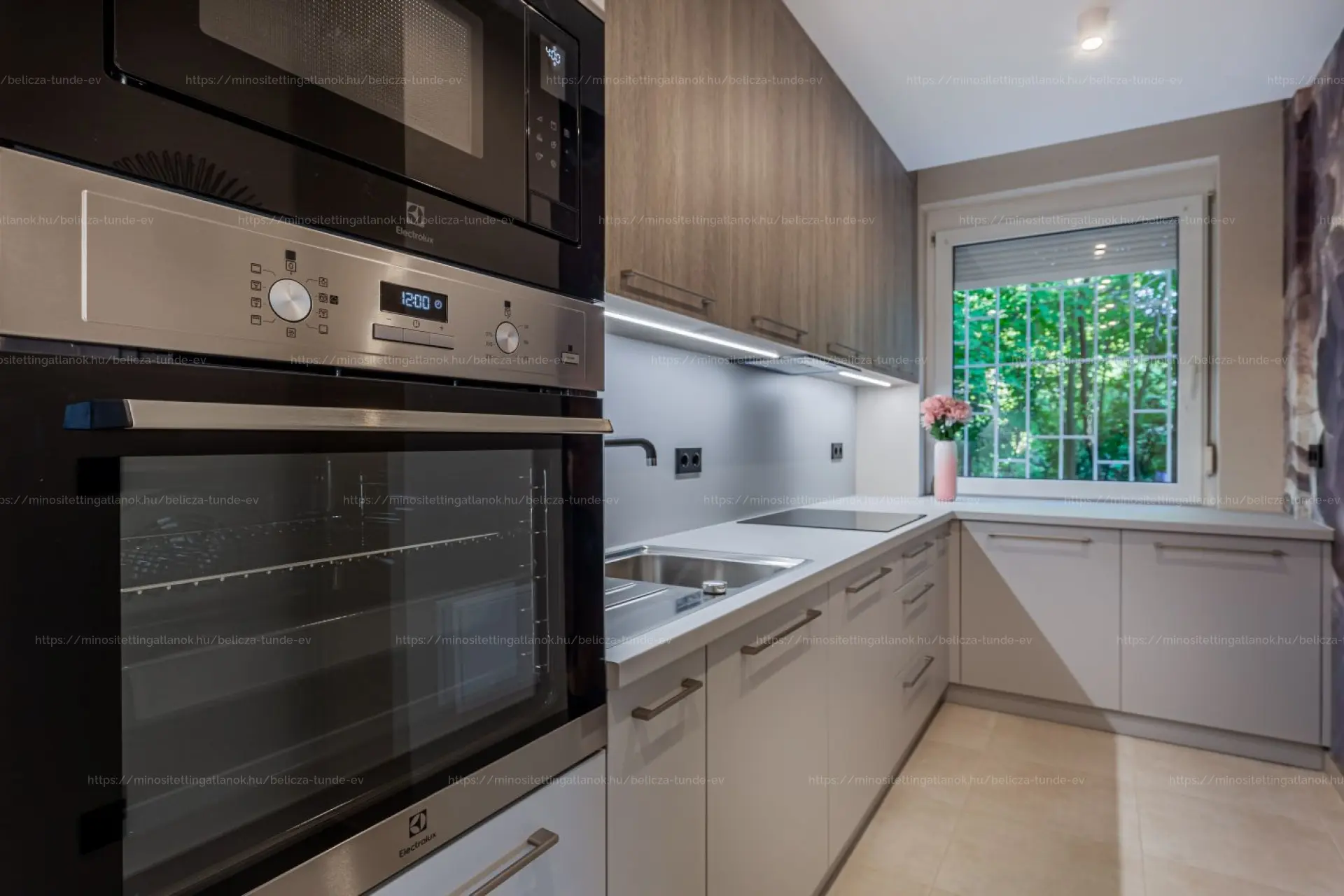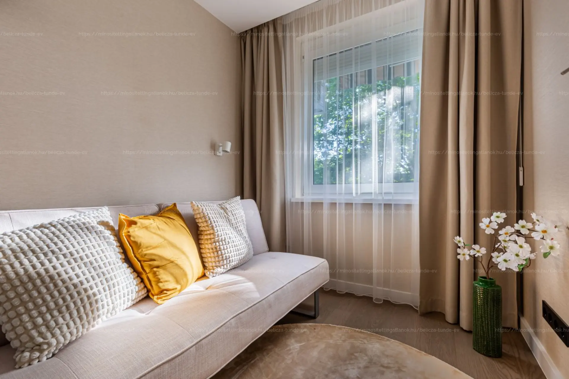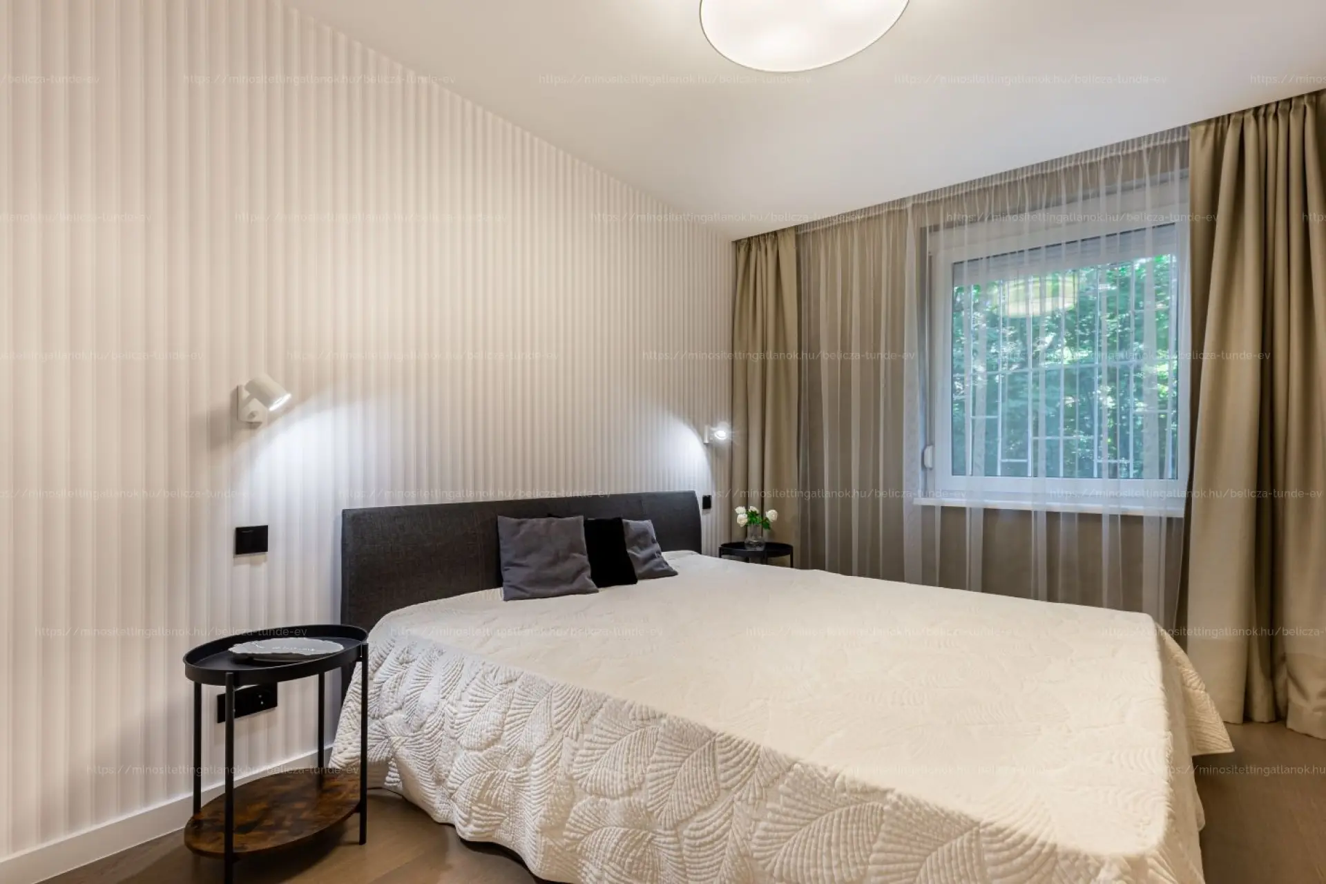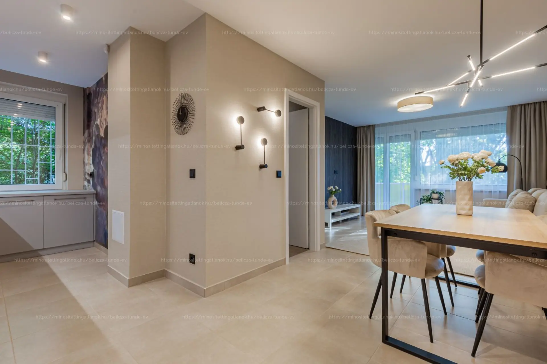 Gellérthegy tetején várja lakóját ez a lakberendező tervei alapján készült és mentesen, modern stílusban felújított, 61 nm-es, nappali+ 2 szobás, erkélyes, csendes lakás. A társasház a Kelenhegyi úton helyezkedik el, távolabb az úttól, így csendes és nagyon hangulatos férfás környezetben, a hátsó kapun keresztül közvetlenül a Gellért- hegy parkjába tudunk menni, így a lakást azoknak ajánlanám, akiknek fontos a természet közelsége, imádnak a panorámát nézni, mégis fontos a város közelsége. A Mom Park, Alle, Erzsébet híd 5-7 perces autóúttal elérhető, de ezek gyalog sincsenek messze, a 27-es busz pedig a ház előtt áll meg. A lakás a a földszinten található, de mivel padlófűtéssel van ellátva, így nem hideg. Belépve egy előszobába érkezünk, beépített szekrény biztosítja a kabátok, cipők tárolását. Szemben a hálószoba található, mely kényelmes méretű, parkra néző, így madárcsicsergésre ébredhetünk. Tovább haladva az étkező-konyha nappali rész következik. A konyha modern, teljesen felszerelt: hűtő, mosogatógép, villanytűzhely és főzőlap, elszívó, sok tárolási lehetőséggel, ablakkal. A nappaliból jutunk ki a tágas erkélyre, mely hangulatosan van berendezve, tökéletes helyszínt biztosít a reggelihez, a vacsorához vagy esti borozgatáshoz. Innen nyílik még egy kisebb szoba, mely dolgozószobaként és vendégszobaként is használható. Egy nagy méretű és gyönyörű fürdőszoba került kialakításra még káddal és zuhanyfülkével, illetve tükörmögötti rejtett, nagy szekrénnyel, ezenkívül a bejárat mellett még egy külön mellékhelyiség kézmosóval felszerelve, illetve a mosógép is itt kapott helyet. A lakás teljesen bútorozott, minőségi, új bútorokkal, így ide az új lakónak csak a bőröndjét kell hoznia. Magára és környezetére igényes bérlőt várunk akár egyedülállók, akár párok számára. Kisállat és dohányzás nem megengedett a lakásban.