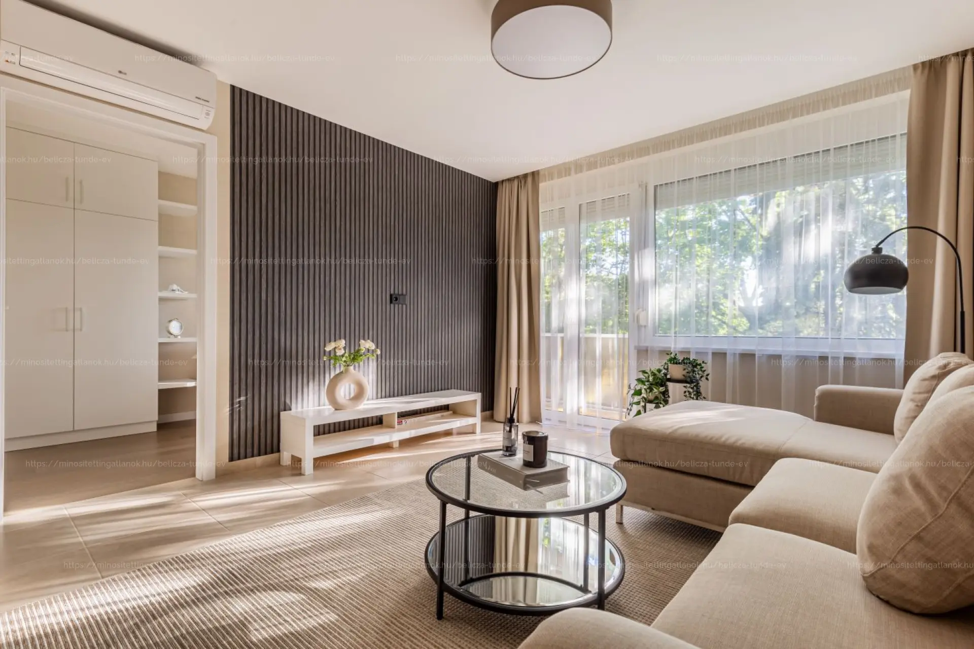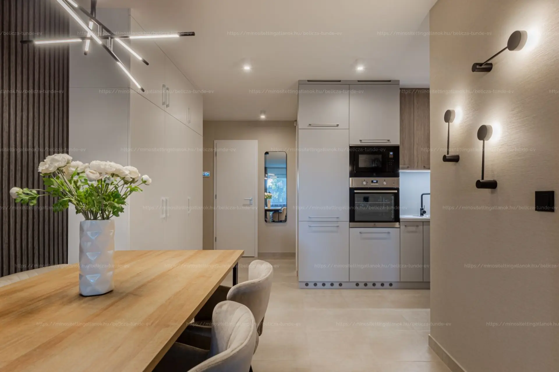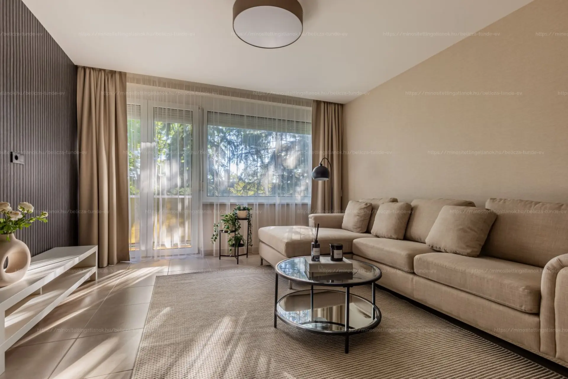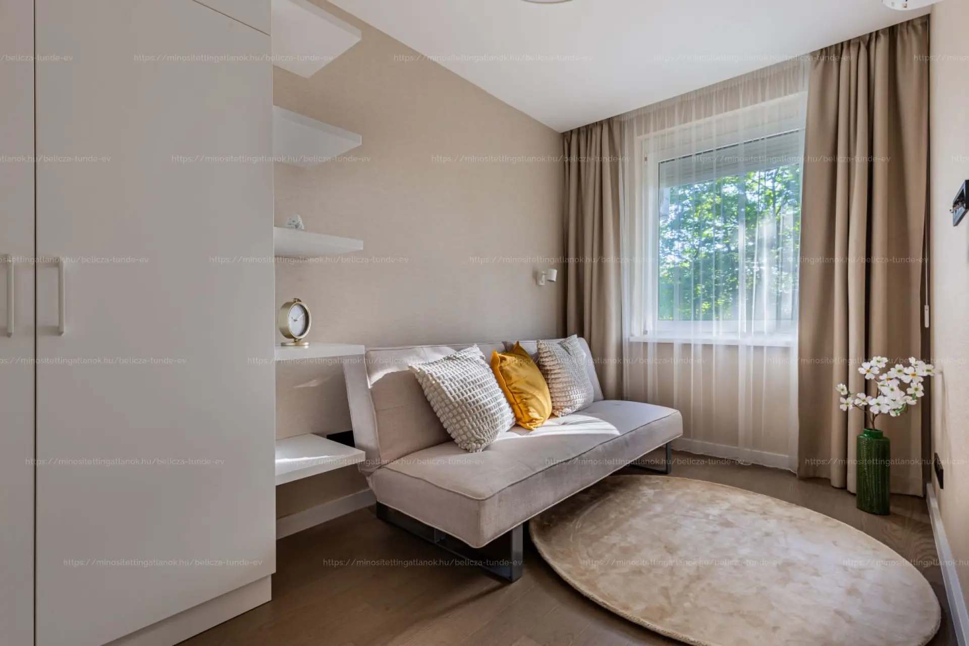 Gellérthegy tetején várja lakóját ez a lakberendező tervei alapján készült és mentesen, modern stílusban felújított, 61 nm-es, nappali+ 2 szobás, erkélyes, csendes lakás. A társasház a Kelenhegyi úton helyezkedik el, távolabb az úttól, így csendes és nagyon hangulatos férfás környezetben, a hátsó kapun keresztül közvetlenül a Gellért- hegy parkjába tudunk menni, így a lakást azoknak ajánlanám, akiknek fontos a természet közelsége, imádnak a panorámát nézni, mégis fontos a város közelsége. A Mom Park, Alle, Erzsébet híd 5-7 perces autóúttal elérhető, de ezek gyalog sincsenek messze, a 27-es busz pedig a ház előtt áll meg. A lakás a a földszinten található, de mivel padlófűtéssel van ellátva, így nem hideg. Belépve egy előszobába érkezünk, beépített szekrény biztosítja a kabátok, cipők tárolását. Szemben a hálószoba található, mely kényelmes méretű, parkra néző, így madárcsicsergésre ébredhetünk. Tovább haladva az étkező-konyha nappali rész következik. A konyha modern, teljesen felszerelt: hűtő, mosogatógép, villanytűzhely és főzőlap, elszívó, sok tárolási lehetőséggel, ablakkal. A nappaliból jutunk ki a tágas erkélyre, mely hangulatosan van berendezve, tökéletes helyszínt biztosít a reggelihez, a vacsorához vagy esti borozgatáshoz. Innen nyílik még egy kisebb szoba, mely dolgozószobaként és vendégszobaként is használható. Egy nagy méretű és gyönyörű fürdőszoba került kialakításra még káddal és zuhanyfülkével, illetve tükörmögötti rejtett, nagy szekrénnyel, ezenkívül a bejárat mellett még egy külön mellékhelyiség kézmosóval felszerelve, illetve a mosógép is itt kapott helyet. A lakás teljesen bútorozott, minőségi, új bútorokkal, így ide az új lakónak csak a bőröndjét kell hoznia. Magára és környezetére igényes bérlőt várunk akár egyedülállók, akár párok számára. Kisállat és dohányzás nem megengedett a lakásban.