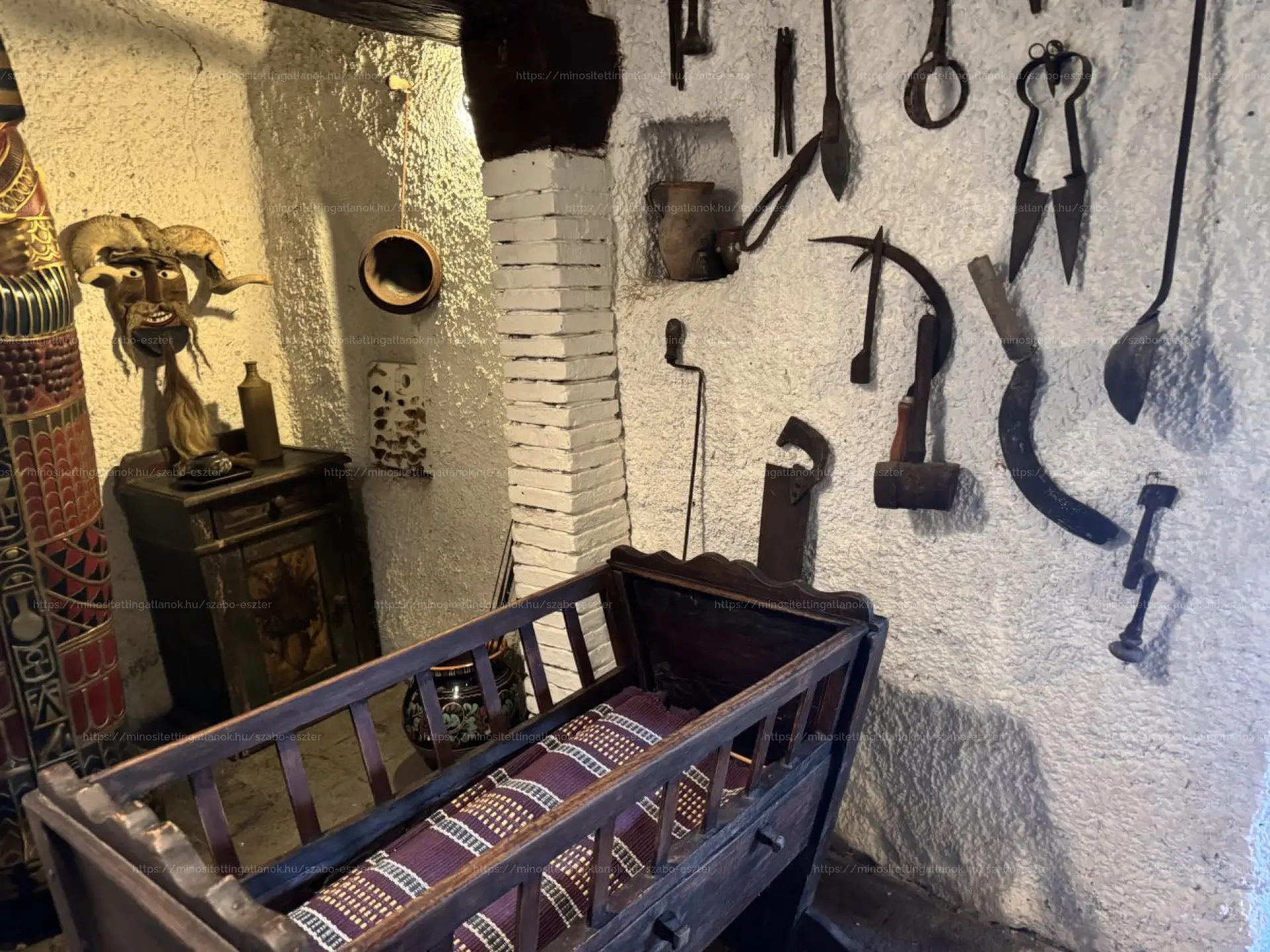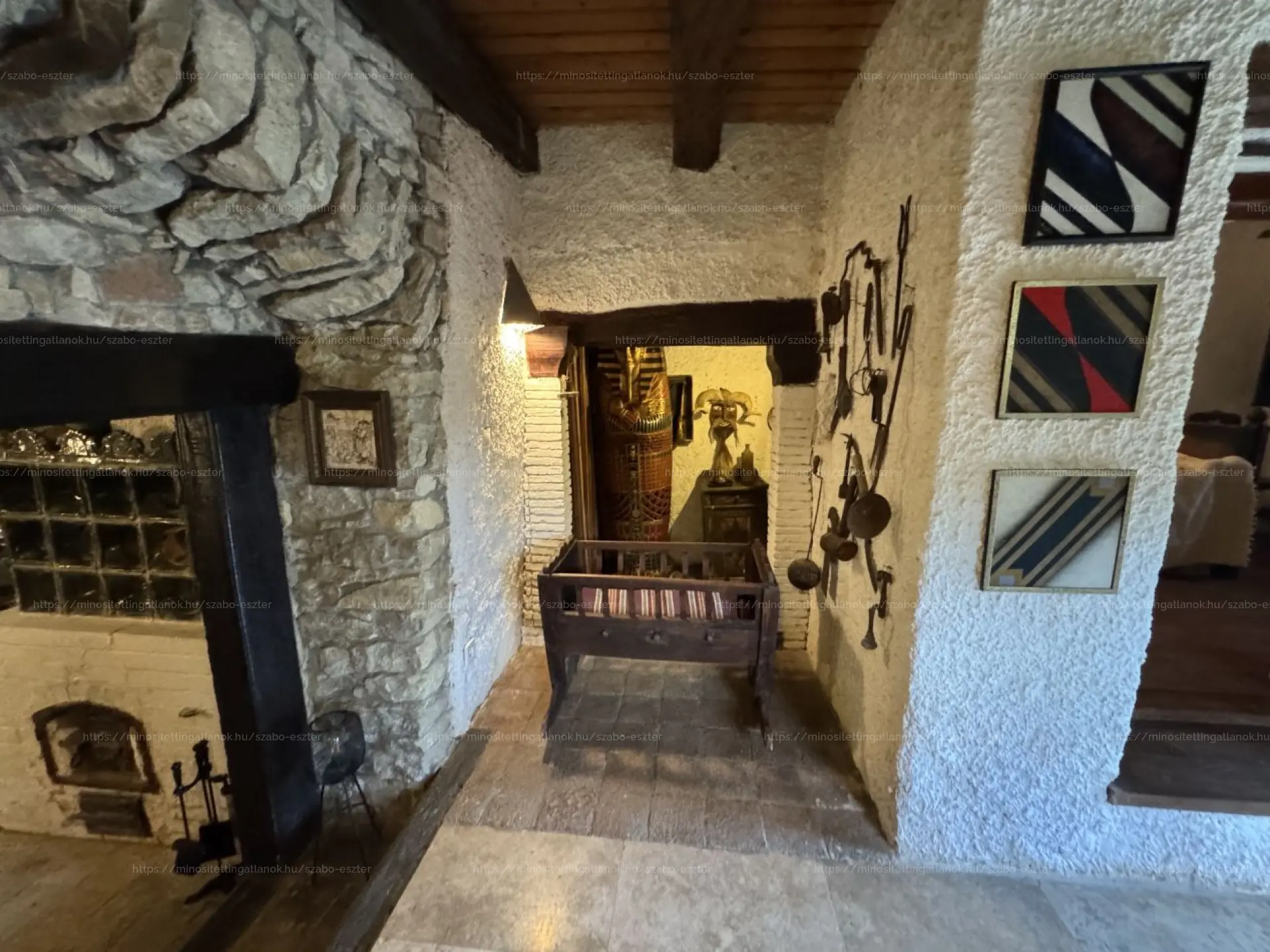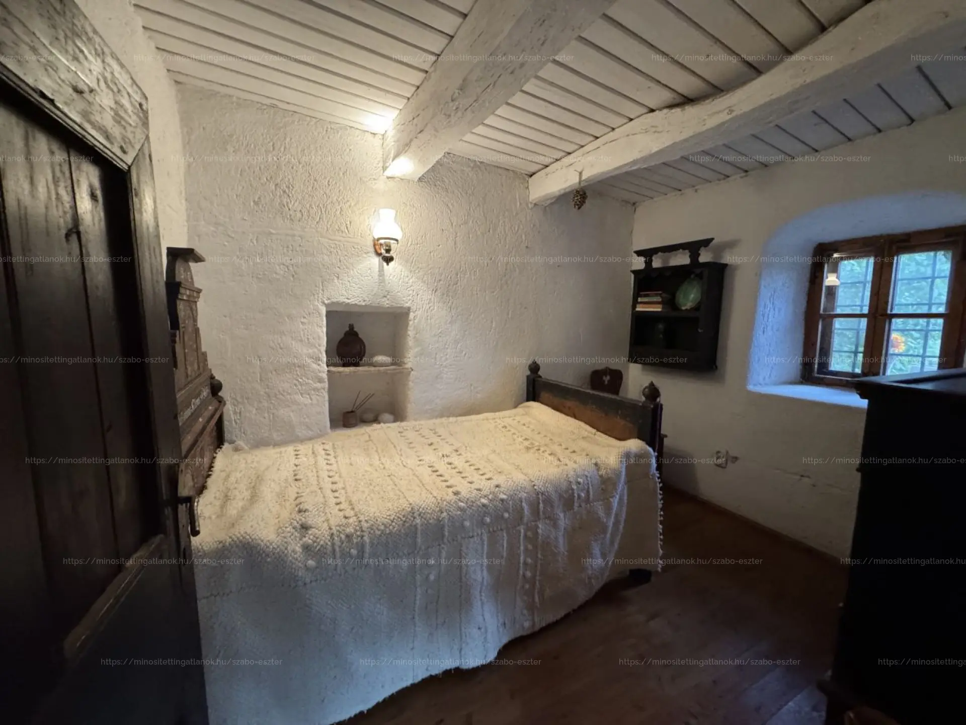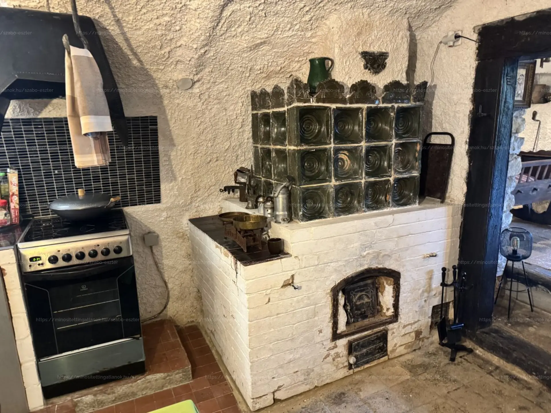 Fűteni a konyhában található búbos kemencével, sparhelttel, valamint elektromos fűtőpanelekkel lehet. A fa bejárati ajtó eredeti, a kazettás fa ablakokon zsalugáter van.