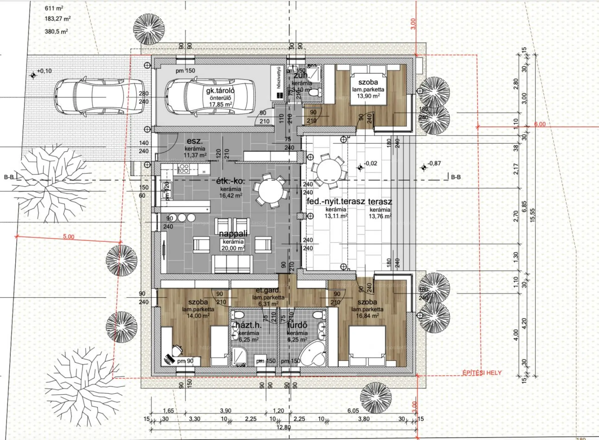 Telek mérete 611 m2.