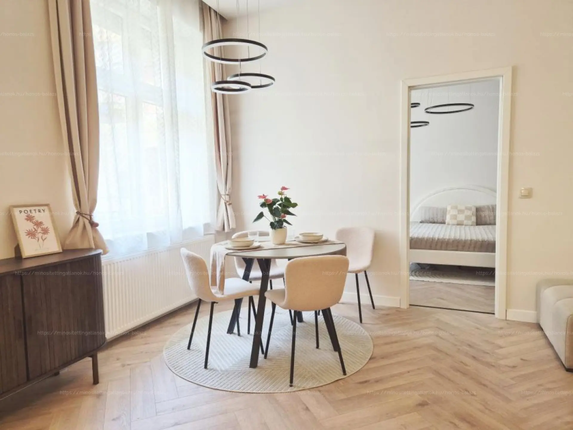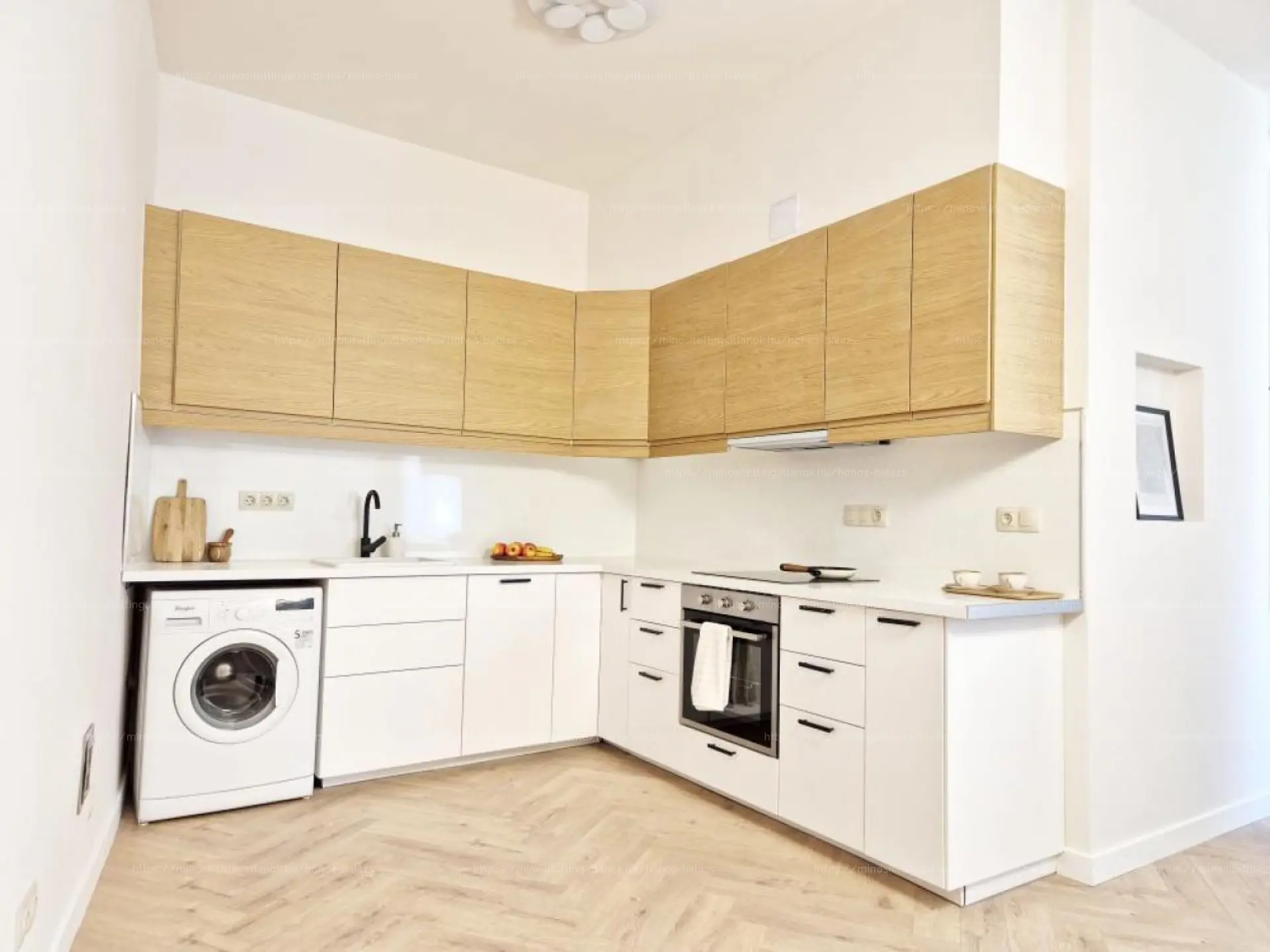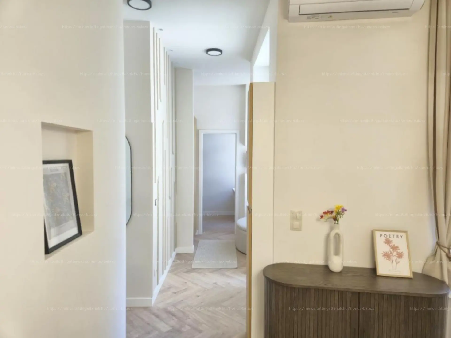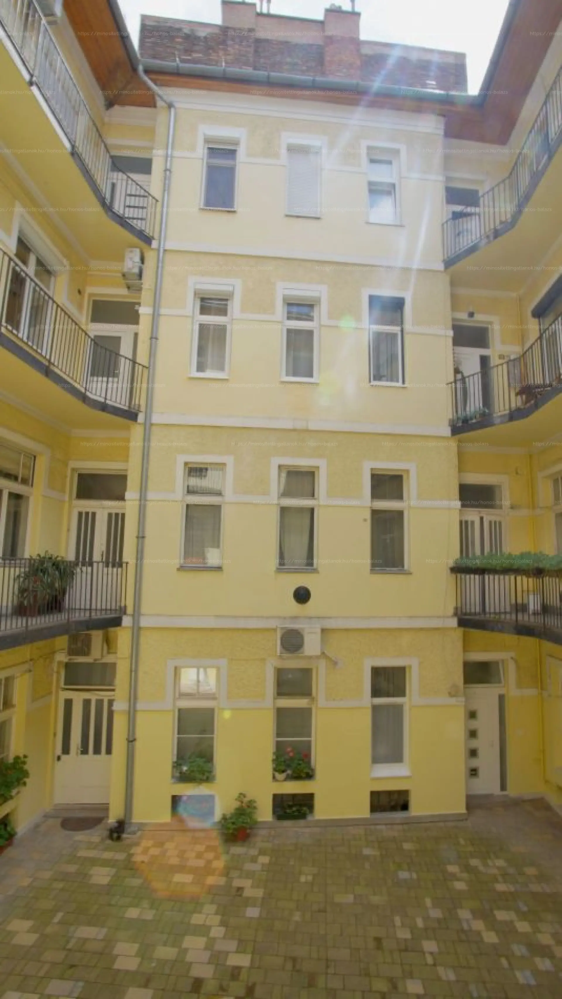 A környék kiemelkedő infrastruktúrával rendelkezik, a közlekedés és a szolgáltatások is mind karnyújtásnyira. Az 1913-as építésű, háromemeletes polgári társasház 2. emeletén elhelyezkedő Nappali + 2 hálós lakás csendes, világos belső udvarra néz. Az átépítés-felújítás során mind funkcionálisan, mind technikailag és esztétikailag is magas színvonalú kivitelezés történt. Ennek eredményeképp egy jól bevilágított, természetesen full gépesített, amerikaikonyhás nappali született, egy nagyobb és egy kisebb háló kínál pihenést az udvar és a jól hangszigetelt ablakok jóvoltából. Kategóriájából kiemelkedően kádas fürdő WC-vel, plusz egy vendégmosdó is növeli a praktikumot.