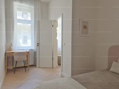 A környék kiemelkedő infrastruktúrával rendelkezik, a közlekedés és a szolgáltatások is mind karnyújtásnyira. Az 1913-as építésű, háromemeletes polgári társasház 2. emeletén elhelyezkedő Nappali + 2 hálós lakás csendes, világos belső udvarra néz. Az átépítés-felújítás során mind funkcionálisan, mind technikailag és esztétikailag is magas színvonalú kivitelezés történt. Ennek eredményeképp egy jól bevilágított, természetesen full gépesített, amerikaikonyhás nappali született, egy nagyobb és egy kisebb háló kínál pihenést az udvar és a jól hangszigetelt ablakok jóvoltából. Kategóriájából kiemelkedően kádas fürdő WC-vel, plusz egy vendégmosdó is növeli a praktikumot.