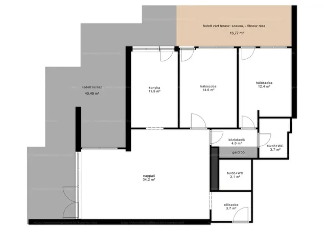Nappali + 2 háló, 2 zuhanyzós fürdőszoba