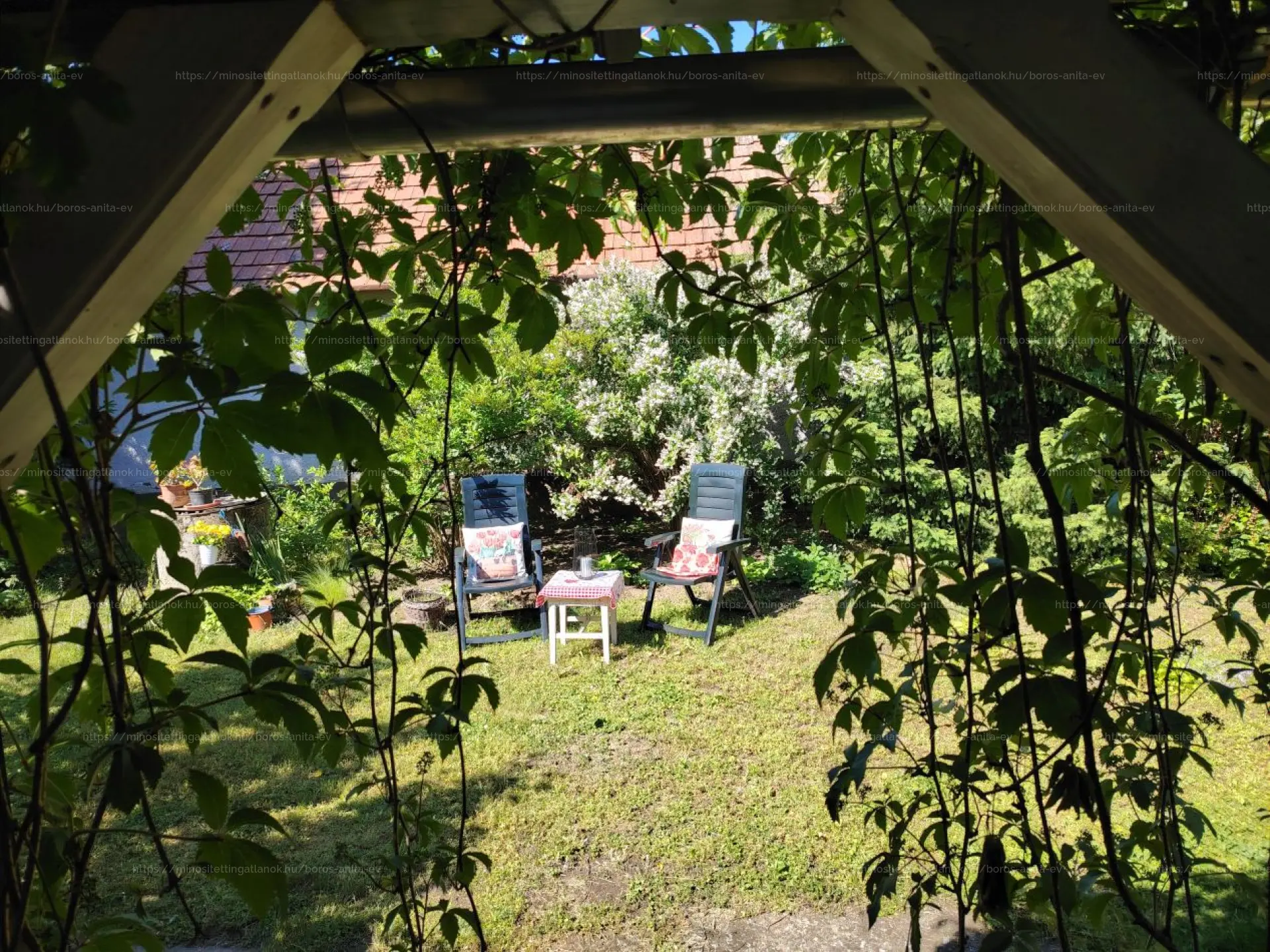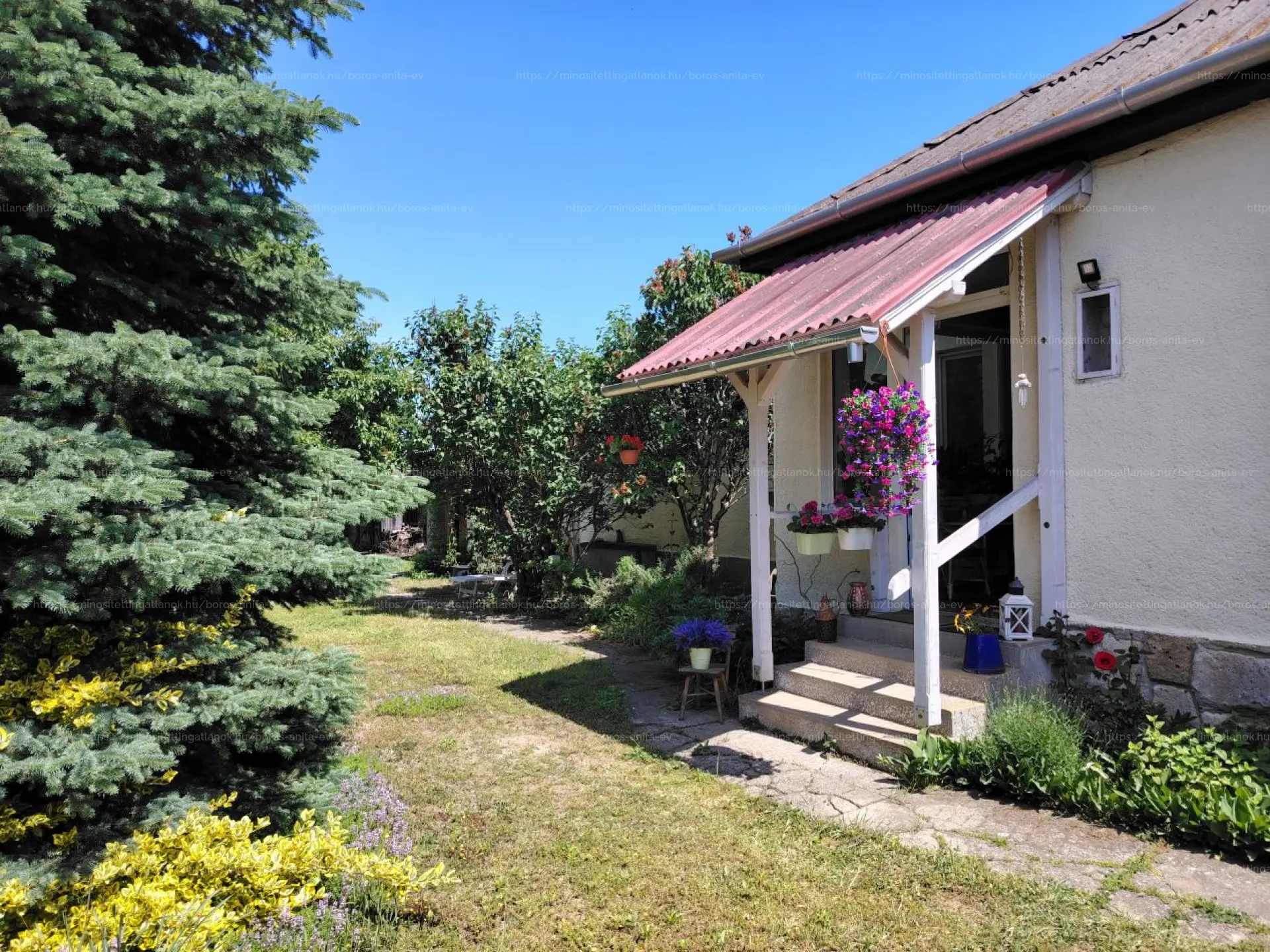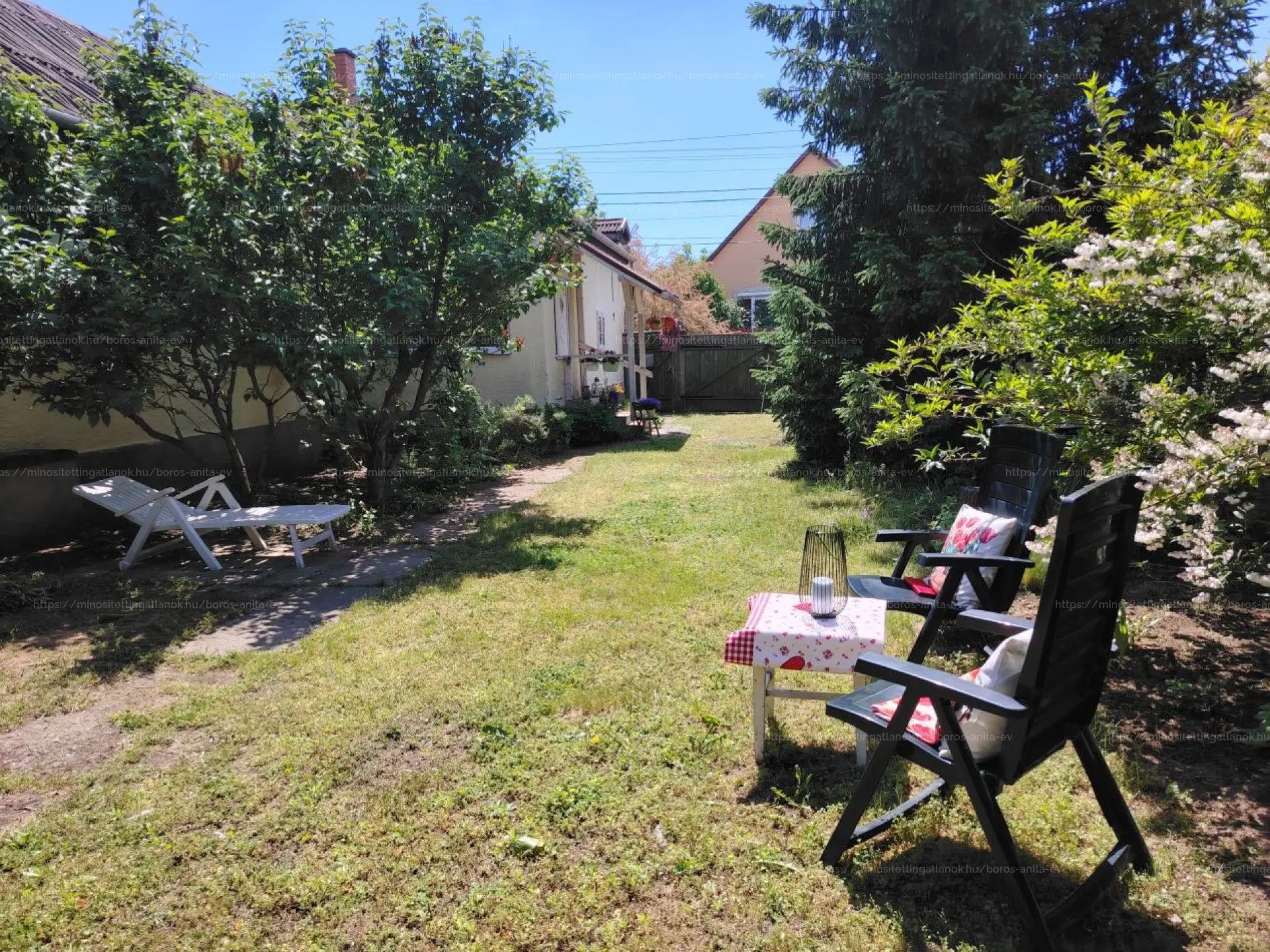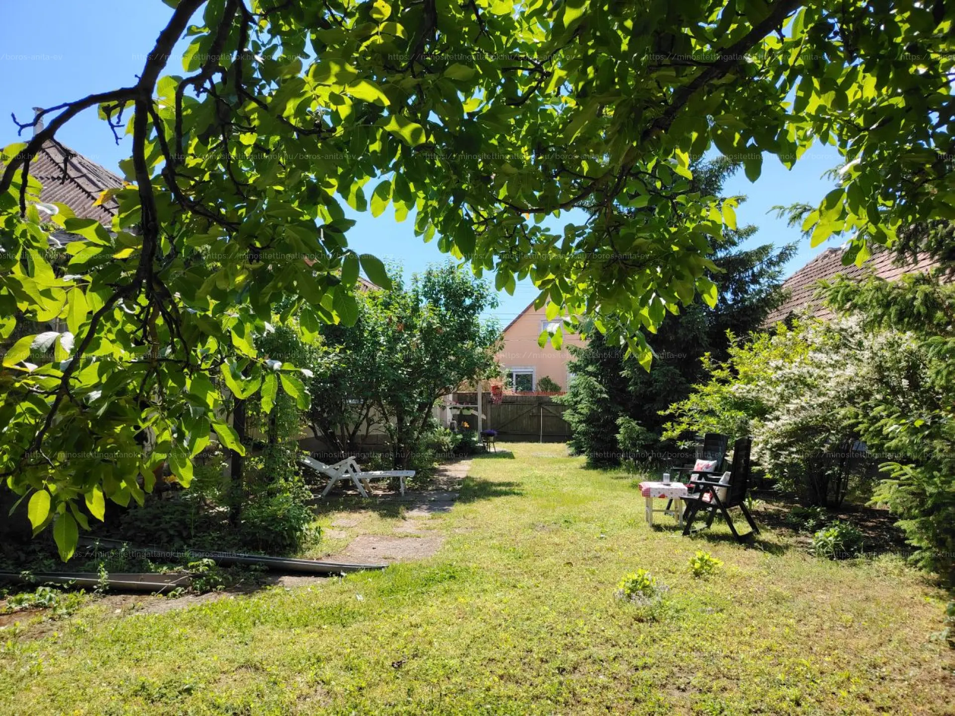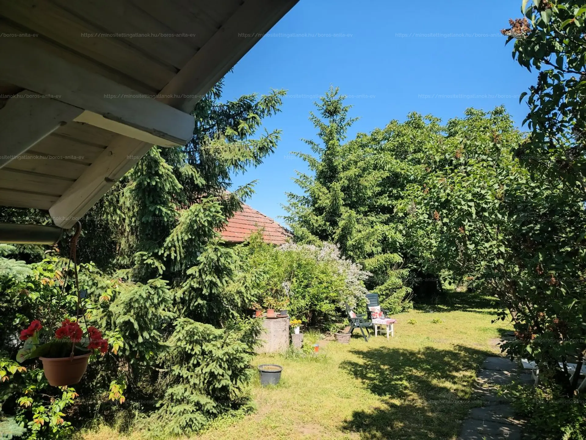 Das Grundstück umfasst 1223 m² und ist vollständig eingefriedet. Der Garten beherbergt diverse Obstbäume (Pflaumen, Kirschen, Pfirsiche, Quitten, Walnüsse) sowie Weinreben. Bei günstigen Wetterbedingungen bietet sich ein eindrucksvoller Ausblick auf das Mátra-Gebirge. Zur Bewässerung steht ein Brunnen zur Verfügung. Hinter dem Haupthaus befinden sich diverse Nebengebäude, darunter Garage, Keller, Holzlager, Ställe und eine Räucherkammer.