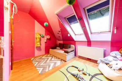 Közlekedő,3 különnyíló hálószoba,gardrób/dolgozó, kádas fürdőszoba.