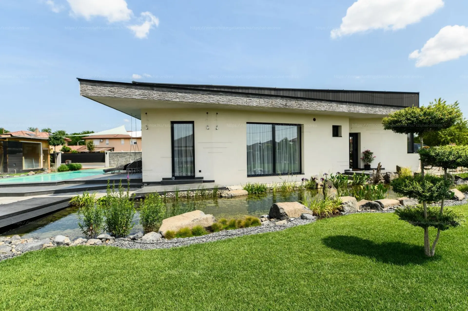 •A gondozott kertben egy 15x4 méteres, LEDVILÁGÍTÁSSAL, vízeséssel ellátott 60m2-es medence, valamint 30 méteres, öntisztuló kerti tó is helyet kapott.