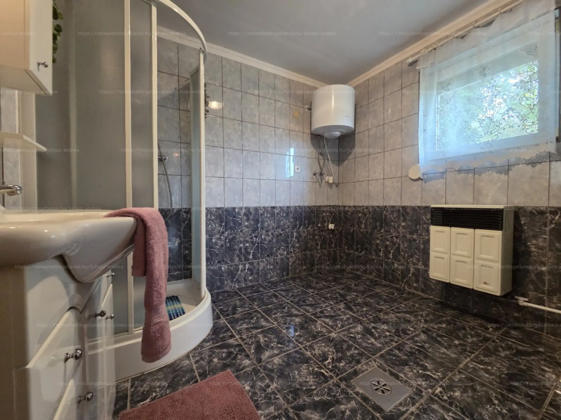 A fürdőszobámban WC is van, a melegvizet villanybojler, a fűtést konvektorok biztosítják.
