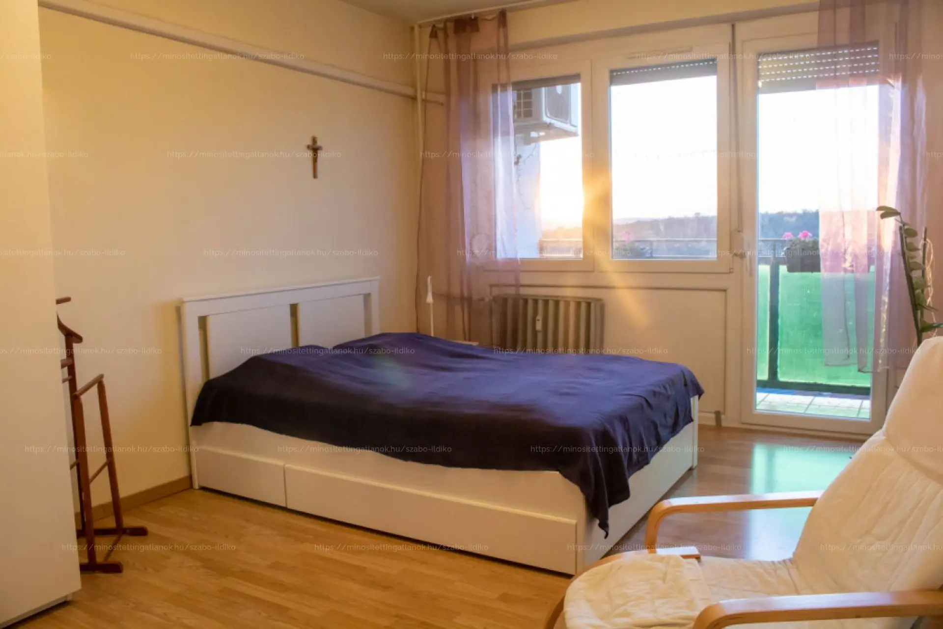 Eladásra kínálok egy 55 m2 alapterületű két szobás, erkélyes zöldre néző panorámás panel lakást. A nappali 24 m2 alapterületű, nyugati tájolású, innen nyílik az erkély panorámával. A légkondicionált étkező a két szoba között helyezkedik el. A hálószoba külön nyíló, nagy ablakos, 12 m2 alapterületű, keleti fekvésű. A konyha világos, nagy ablakos, beépített konyhabútorral, gáztűzhellyel felszerelt.