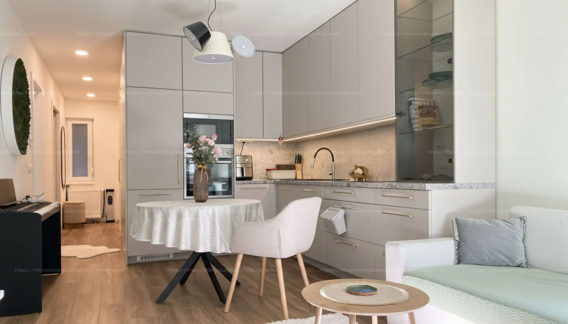 A lakás minden részletében a tudatos tervezés köszön vissza: nemcsak szép, hanem élhető, logikus és hosszú távra is kényelmes otthon.