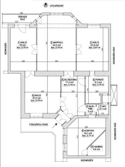 A harmadik hálószoba is külön bejárattal megközelíthető, így a lakás ideális választás lehet akár nagyobb család számára is.