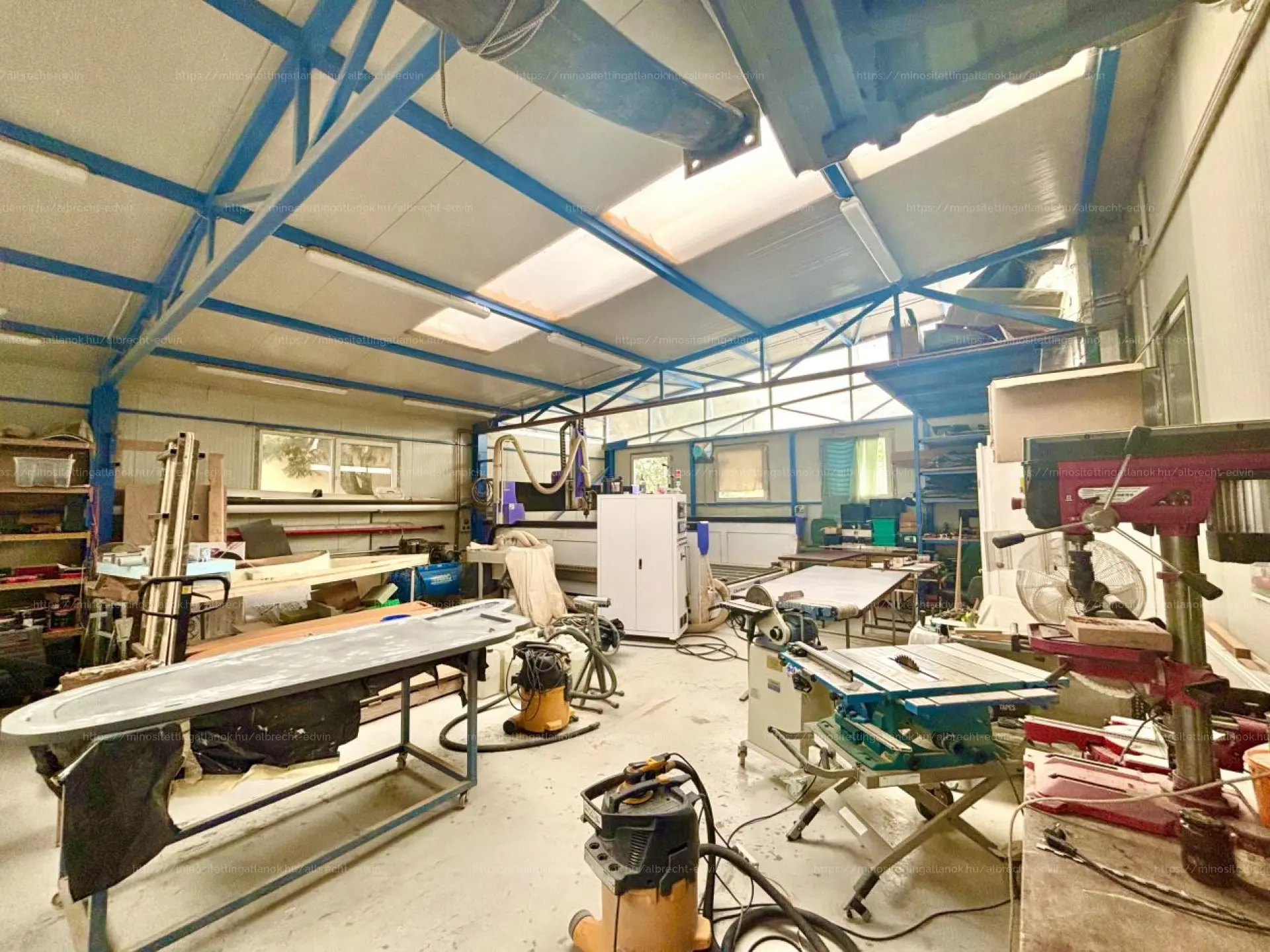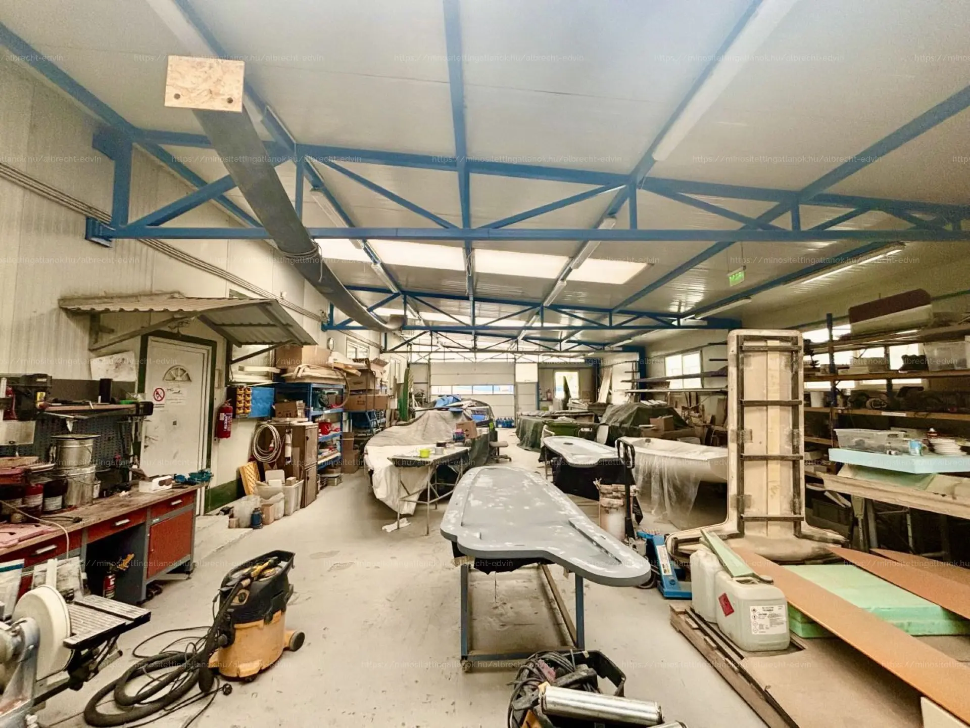 - 316 m2-es 4-6m belmagasságú, 4*5m-es szintbeli kapuval, kiépített szociális blokkal, galéria szinten kb. 30 m2 irodávál rendelkező egység