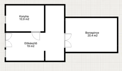 - Alsó szint: 20,4 m2-es, boltíves, jó állapotú kőpince; 19 m2-es előkészítő helyiség; 10,9 m2-es konyha. A konyha és az előkészítő közötti fal eltávolítható, így egybenyitva nagy amerikai konyhás nappali alakítható ki.