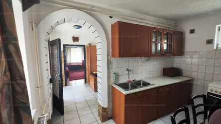 Az utcafront felé található a nagy szoba, hátra felé az udvarra nyílik a kis szoba. Kényelmes, nagy méretű konyhában konyhaszekrény, mosogató és gáztűzhely található, elfér az étkező asztal is. A konyhából nyílik a speiz.