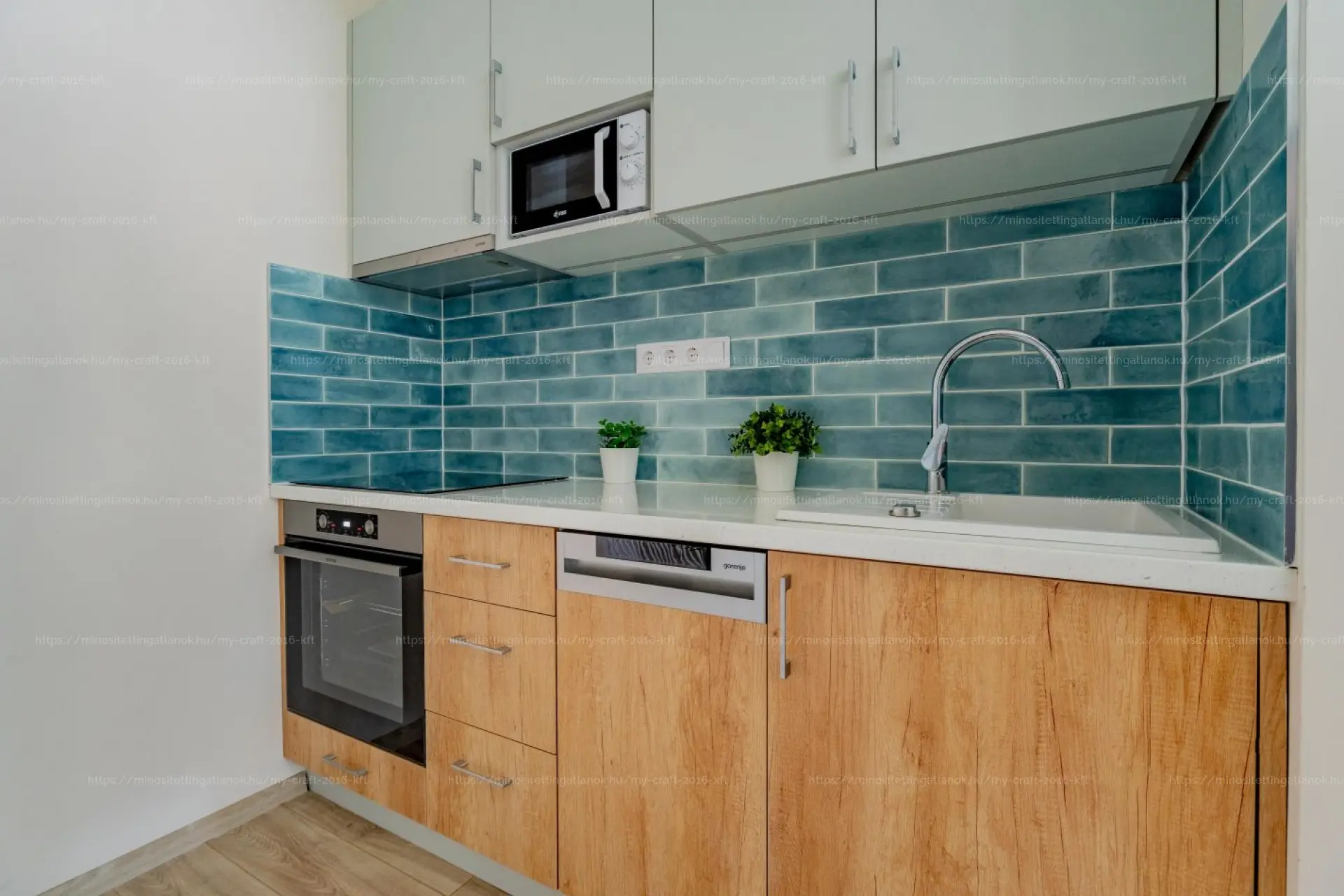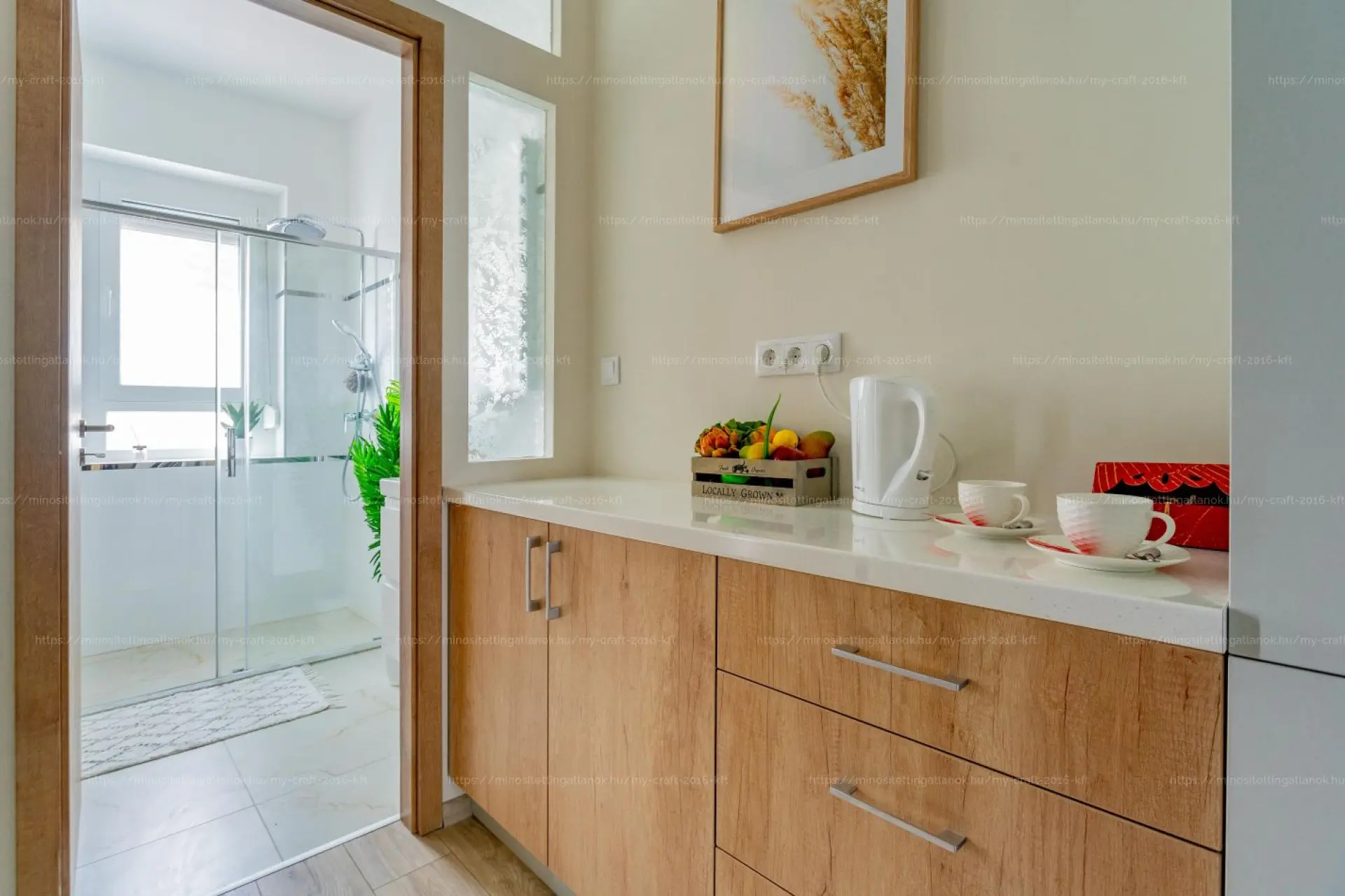 - gyönyörű, gépesített konyha került kialakításra (sütő, főzőlap, fagyasztós hűtőszekrény, mosogatógép, páraelszívó, mikró)