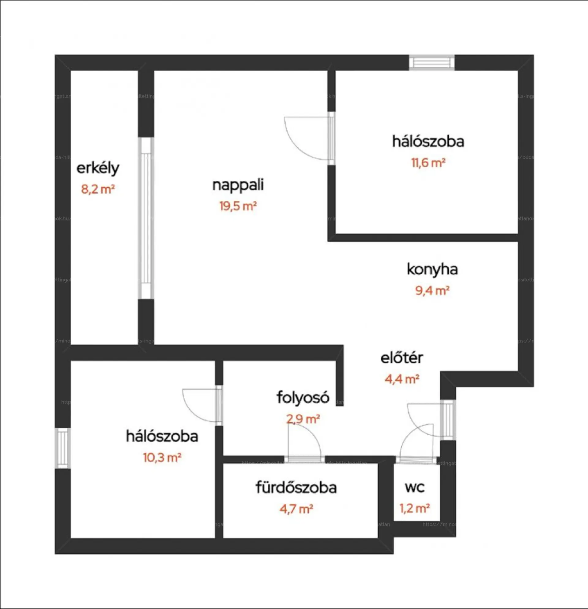 - helyiségei: egybenyitott előszoba – konyha - nappali, 2 külön bejáratú szoba, fürdőszoba, WC