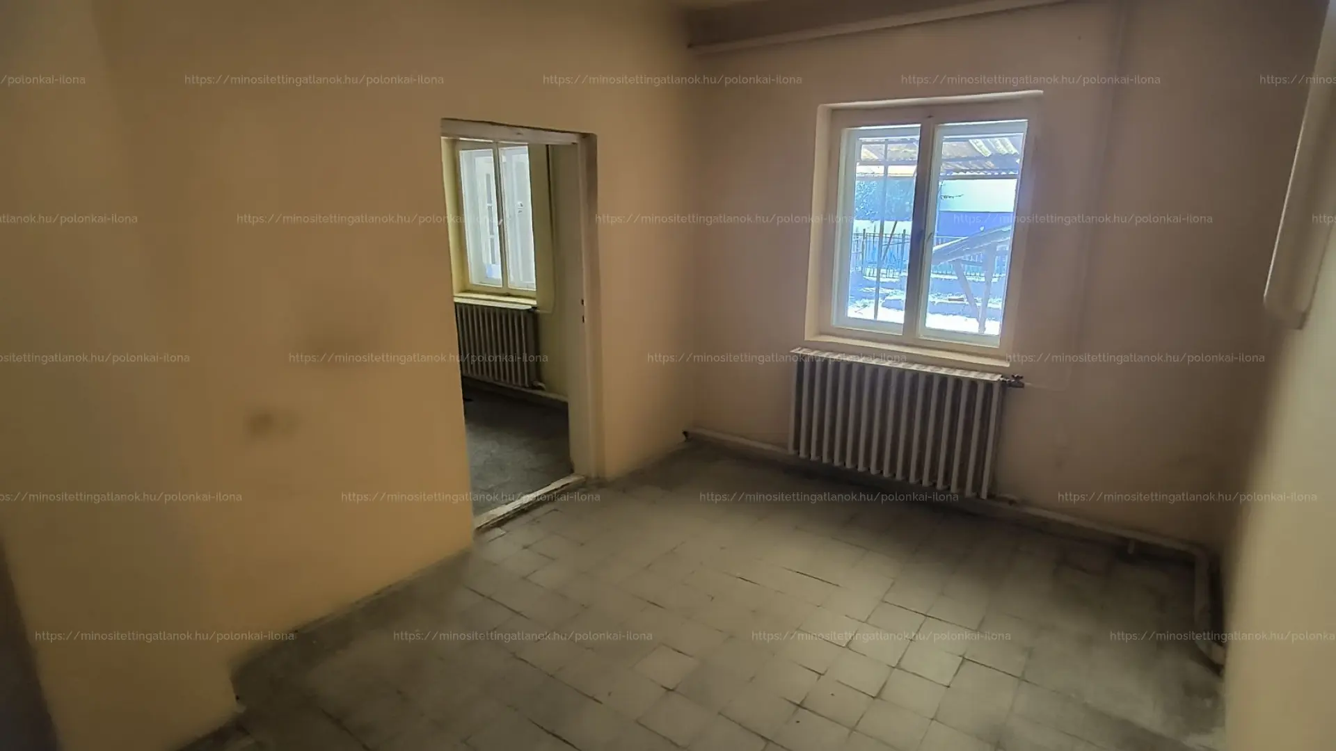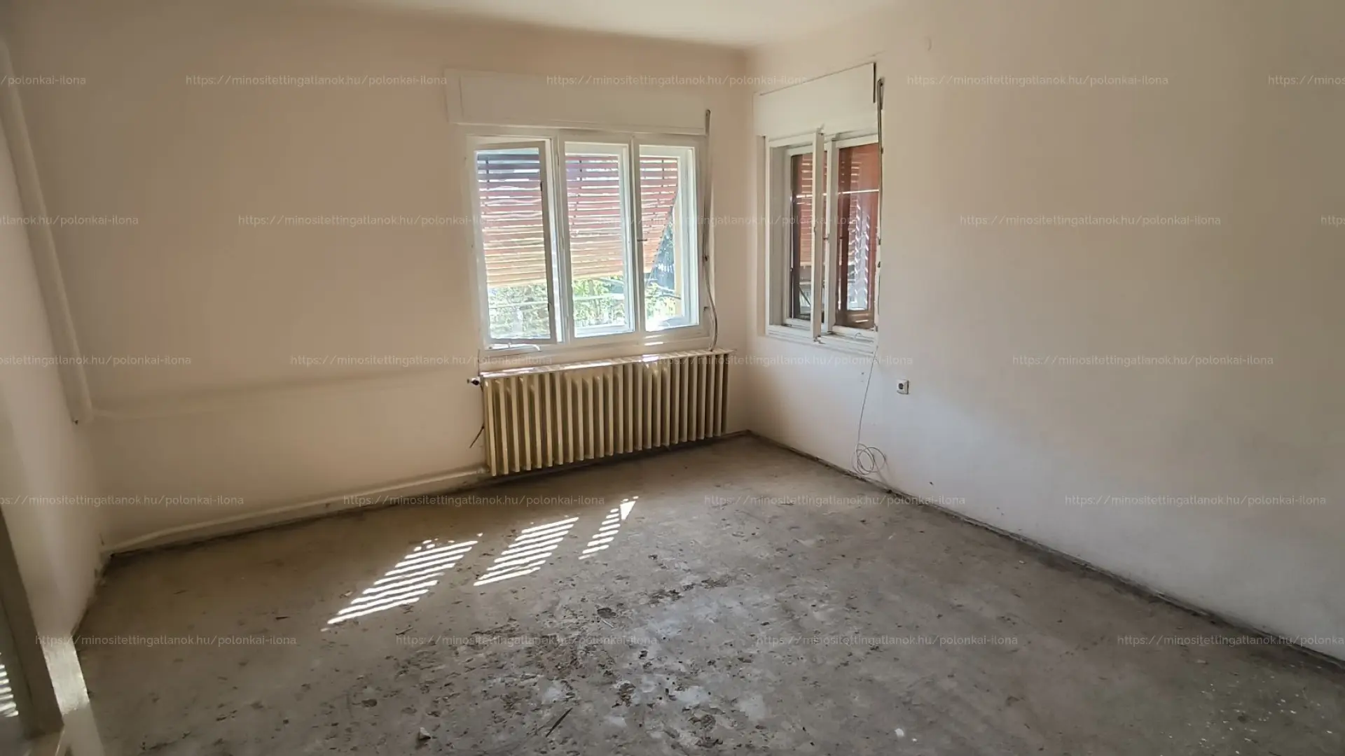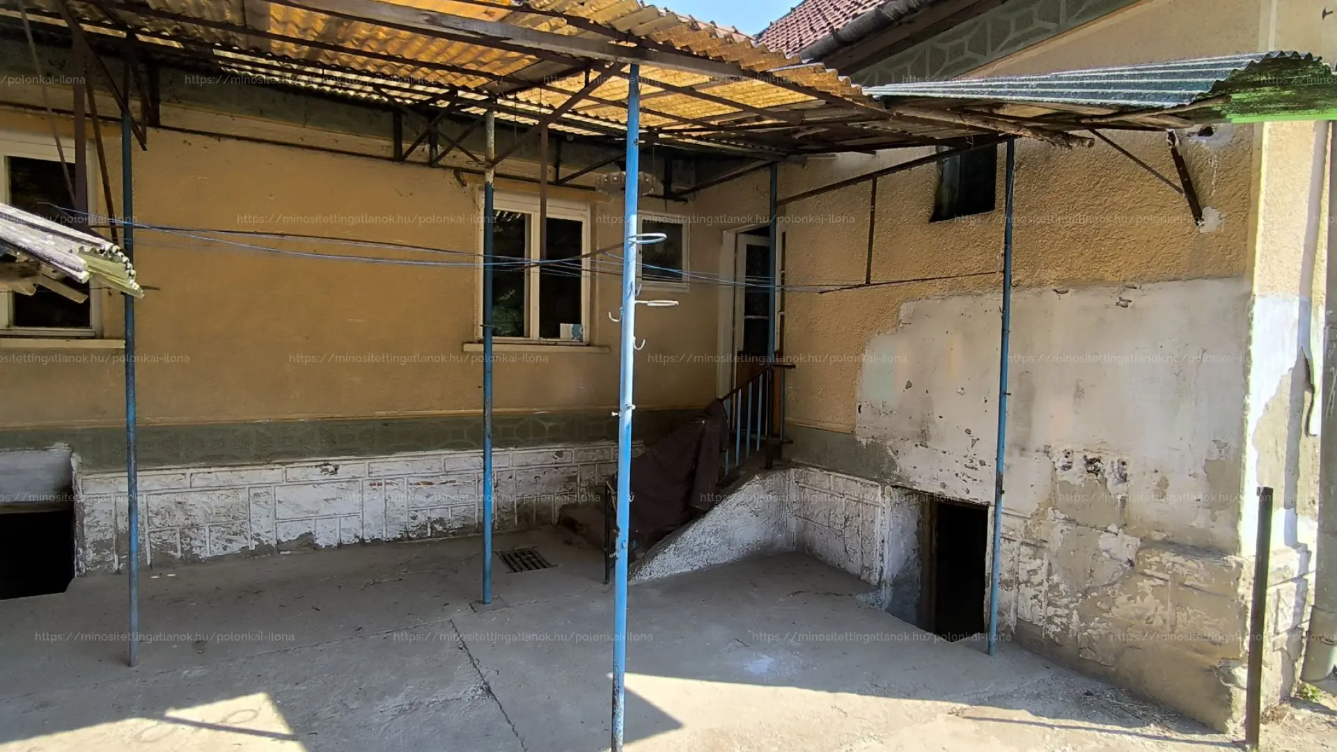 Az 1970 tájékán készült, vegyes falazatú ház szilárd szerkezetű, főként vályogból és téglából épült. Az L alakú elrendezés praktikus, a hosszúkás előszobából minden helyiség elérhető, így a belső terek jól kihasználhatók. A szobák széles, kelet felé néző ablakaiknak köszönhetően fényesek, a padló burkolása az új tulajdonosra bízza, kivéve a konyhát, fürdőszobát és egy szobát, ahol mozaikburkolat található.