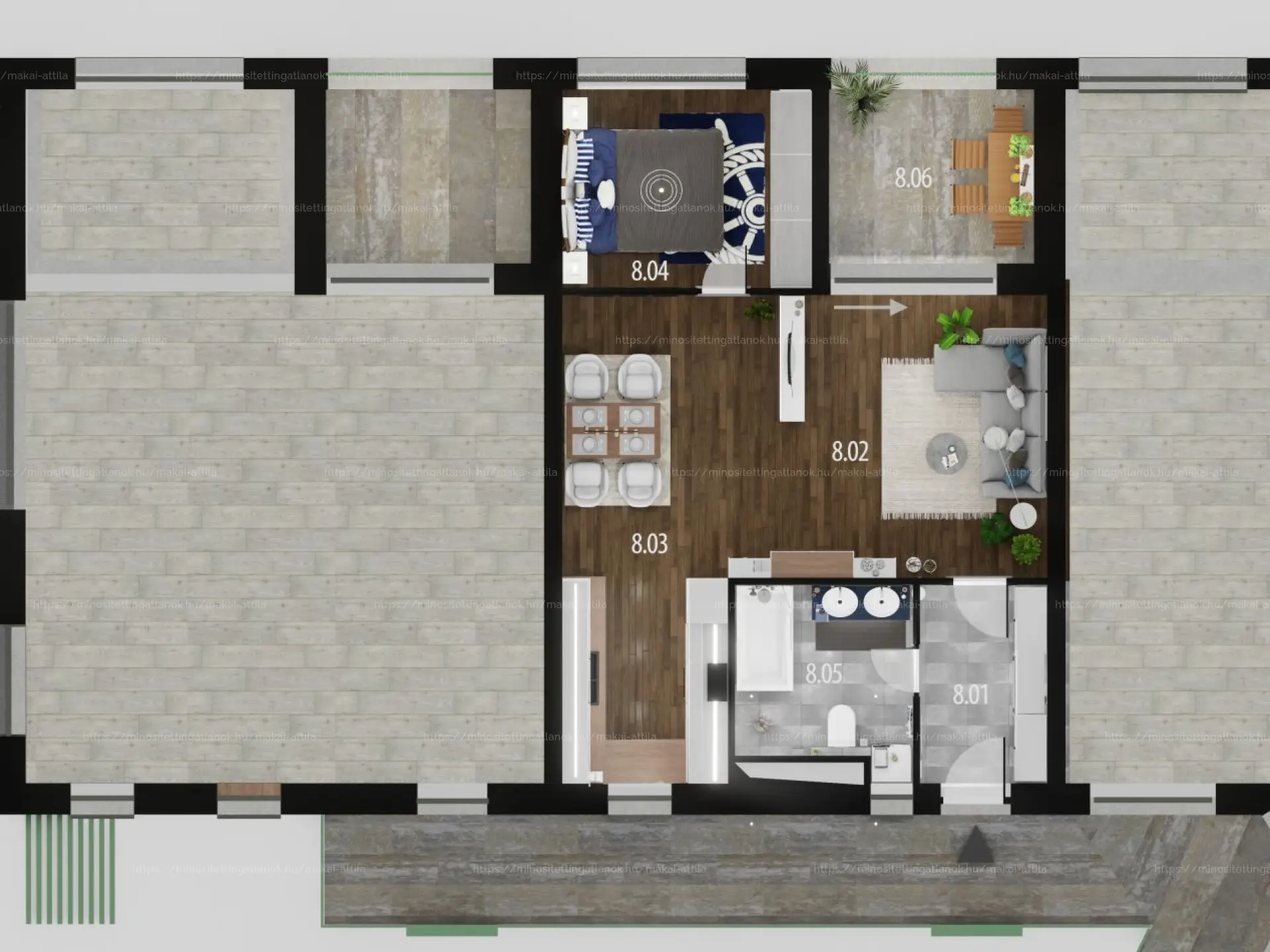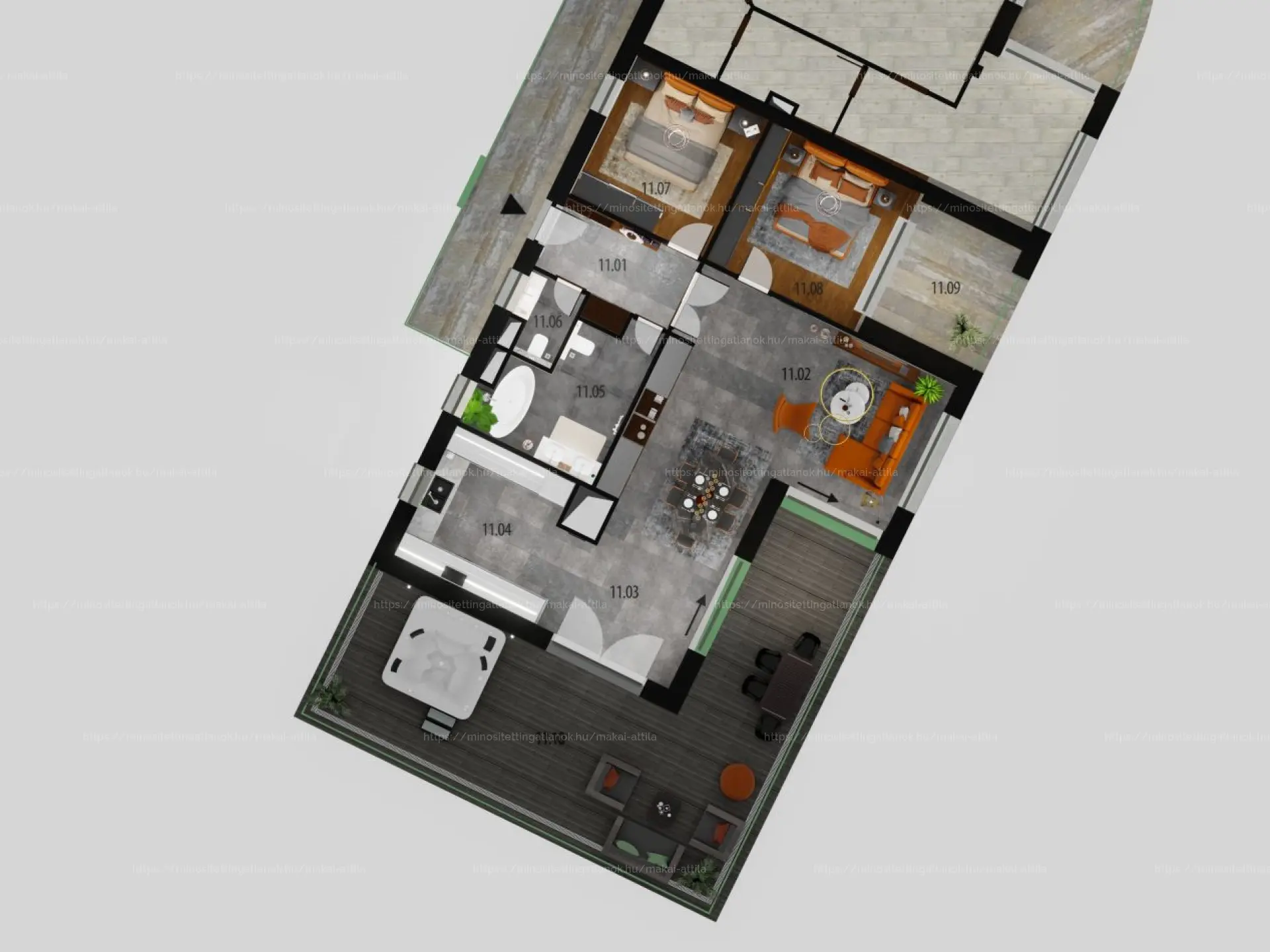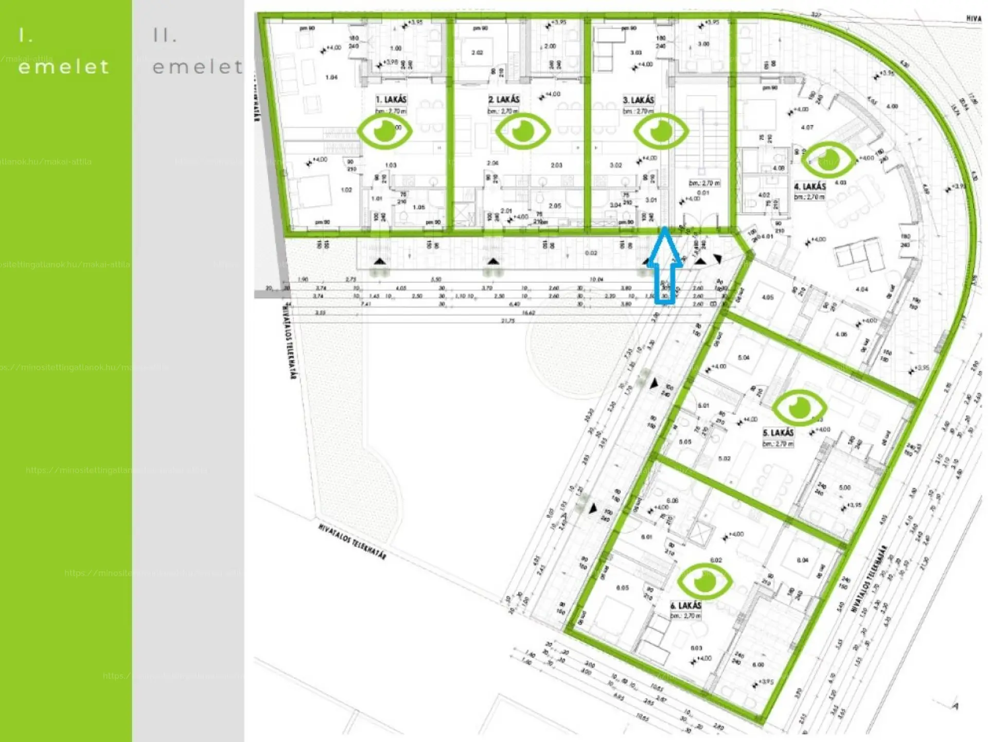A beruházás keretében 40–155 m² közötti alapterületű, összesen 12 lakás épül meg magas színvonalon, egész éves használatra, 7–64 m² közötti teraszokkal.