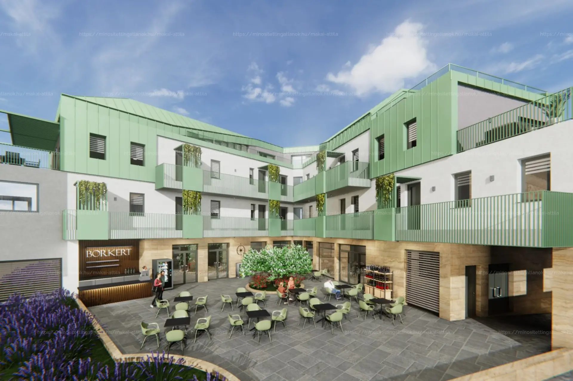 A kínálat különlegessége a földszinten megálmodott, prémium kialakítású Borkert étterem és cukrászda, amelyek szintén megvásárolhatók. Emellett egy exkluzív, 244 m²-es penthouse is várja új tulajdonosát, 115 m²-es terasszal, tágas terekkel és lenyűgöző kilátással – a projekt igazi csúcspontja.