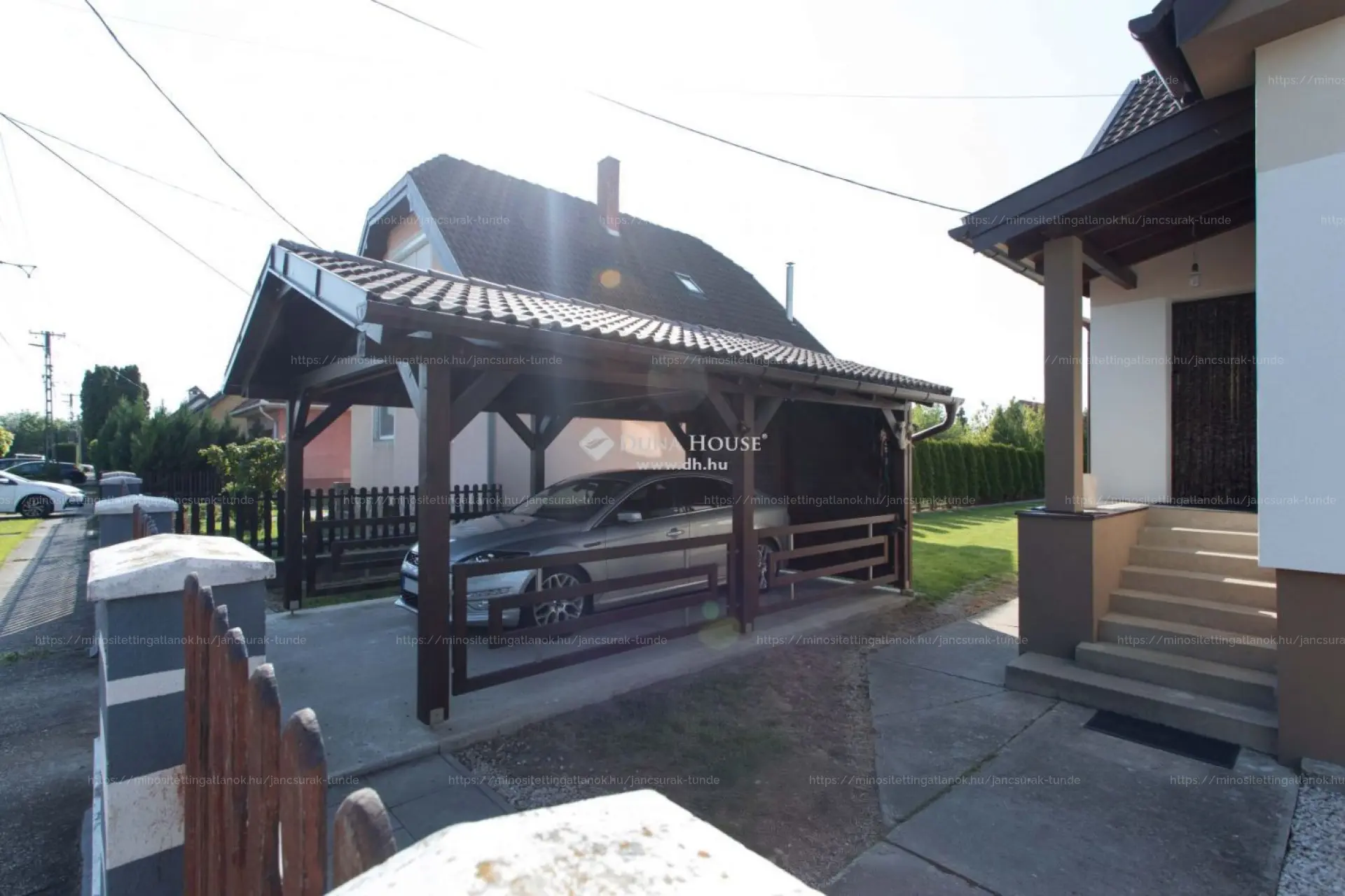 - 30 nm - es fedett tömör fából készült autóbeálló cseréptetővel Orom lefolyó csatornával( falcolással készült)