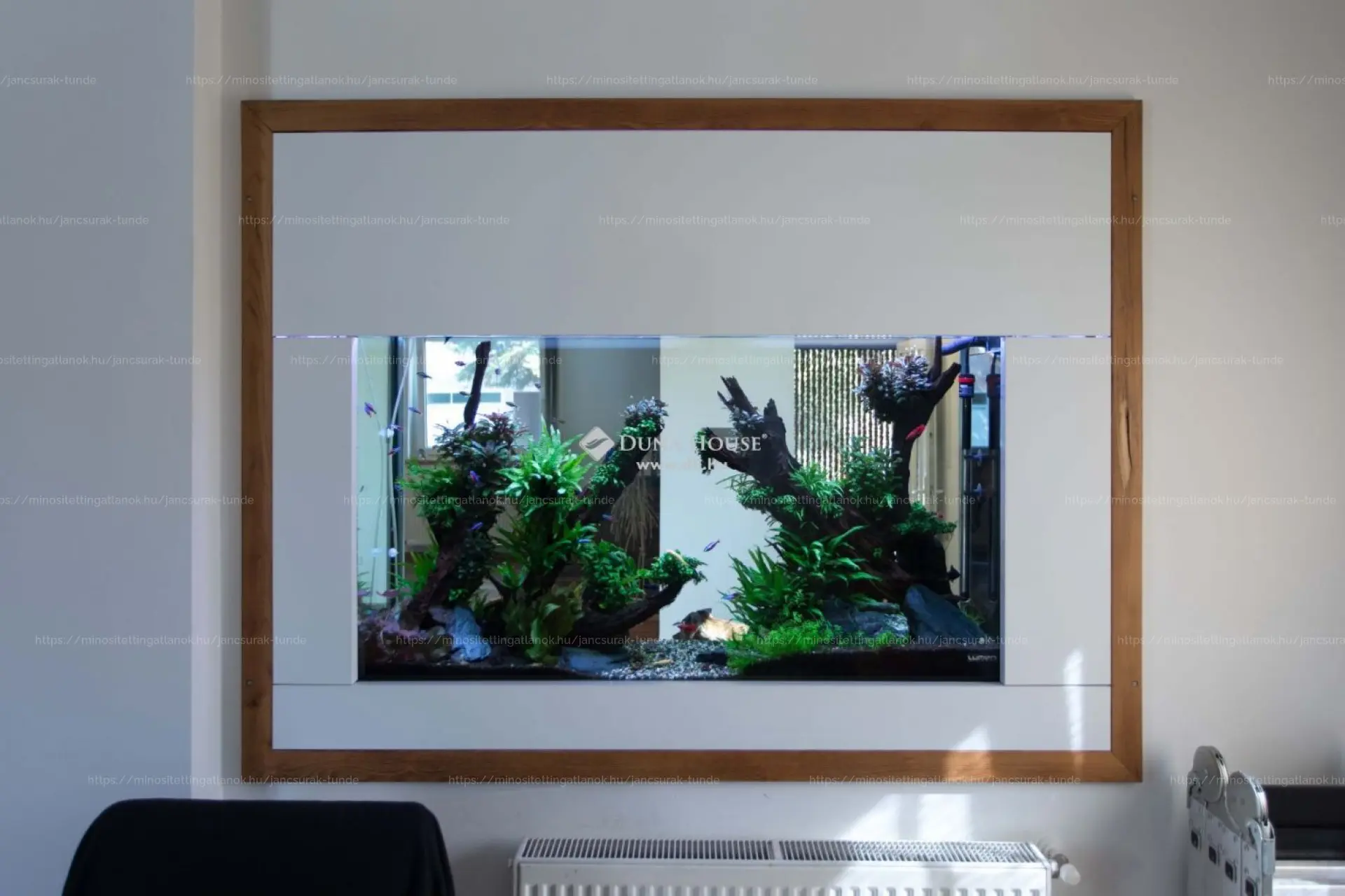 A nappali különlegessége egy 450literes, Co2 rendszerrel és automata szűréssel felszerelt, LED világítású akvárium.