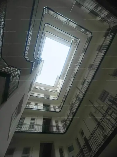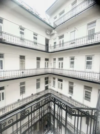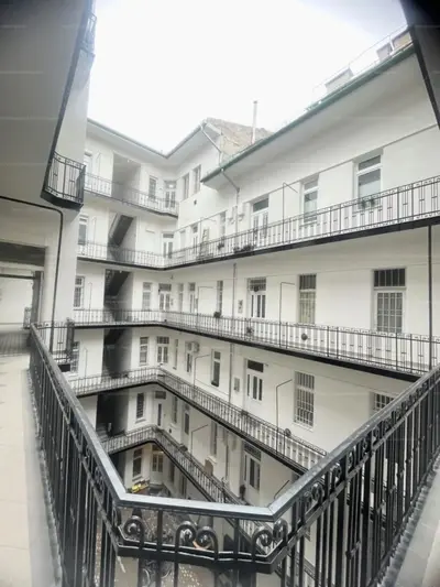 a belső udvar jelenleg felújítás alatt áll, új burkolatot kap a társasház, a függőfolyosó falazata már frissen festve!