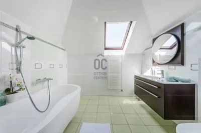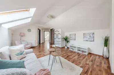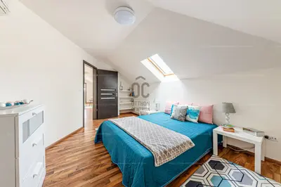 Этот уникальный дом расположен на просторном участке площадью 1284 м², в тихой, но отлично связанной части XXII района.