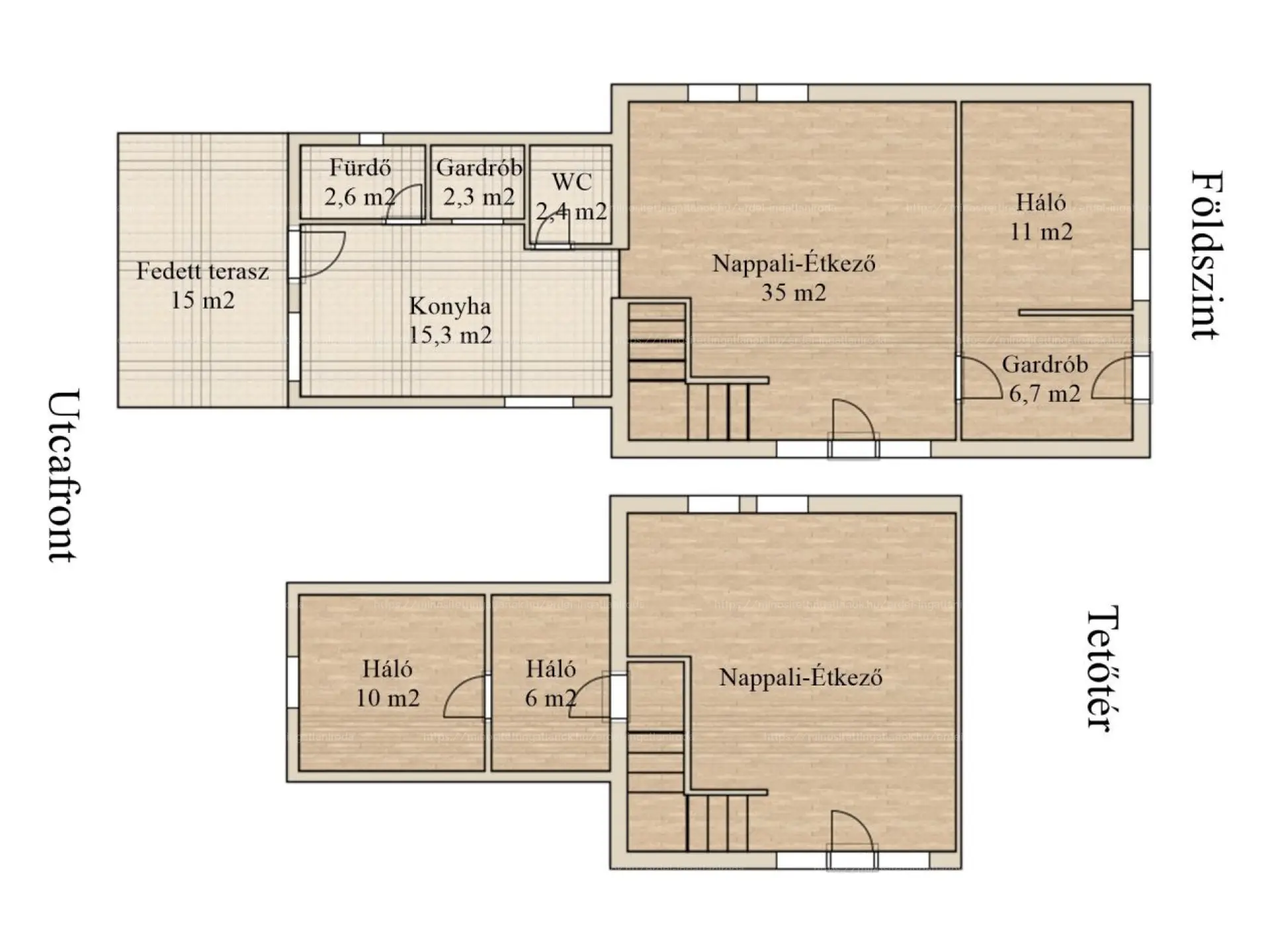 Az épület kétszintes, nettó 91 m²-es lakótérrel rendelkezik, az alsó szint 75 m², a tetőtér 16 m².